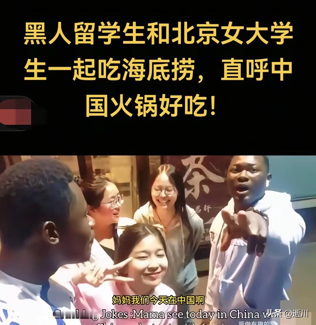 北京女大学生和黑人留学生一起吃火锅🍲 近期北京某女大学生🧑🎓组织和黑人留学生组织一起吃火锅🍲。大家都很开心,黑人喜笑颜开的说“中国火锅🍲真好吃” 针对此事,大家怎么看?