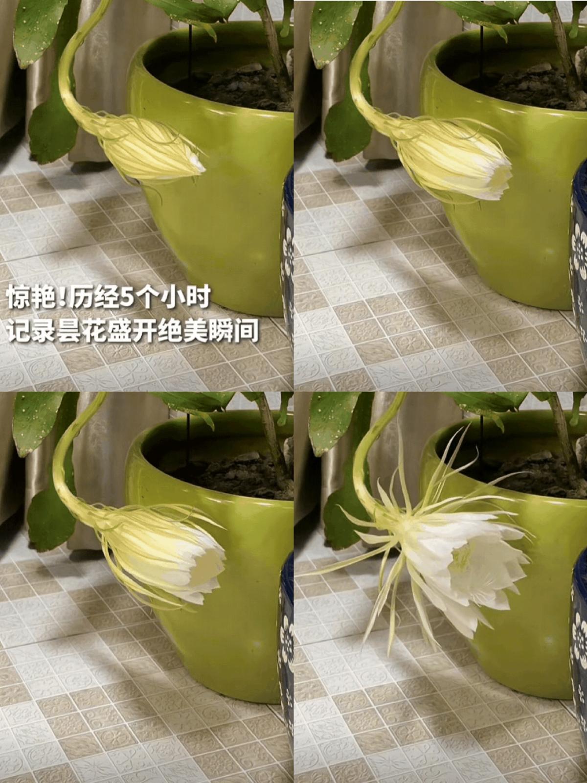 南京一女子准备休息时 竟发现妈妈养了三年的昙花要开啦! 她赶紧用 5小时延时摄影记录 那花开全过程 简直美到让人挪不开眼。 妈妈三年来精心伺候这株昙花 从幼苗开始,悉心照料 才盼来这首次绽放 昙花花期短,却美得惊心动魄。 这让我想到 生活中很多美好都如昙花一现 需要长久付出和耐心等待 就像我们做任何事,坚持积累 才能迎来那璀璨瞬间。 大家生活里有没有这样 长久付出换来美好瞬间的事儿? 快来分享分享~