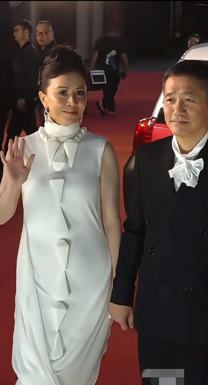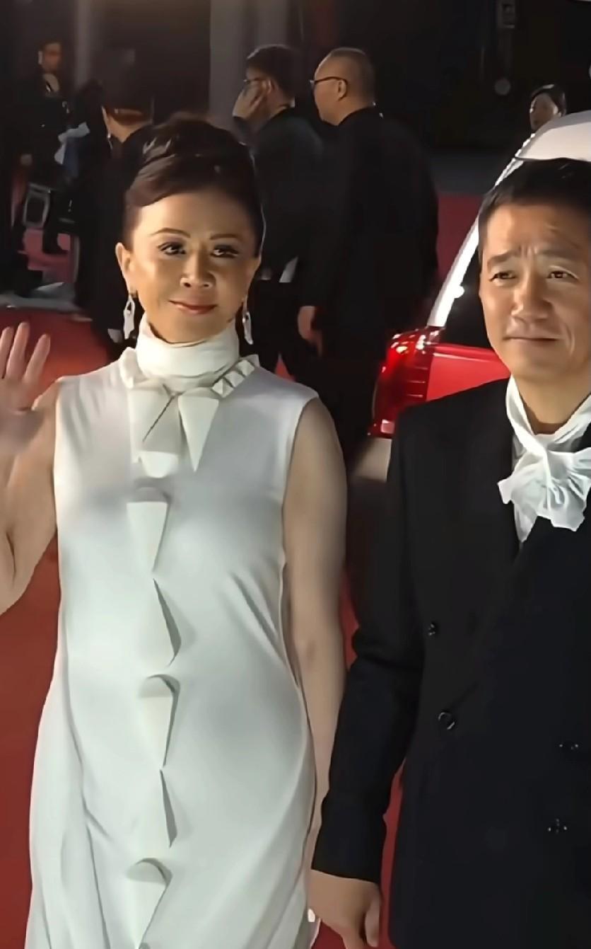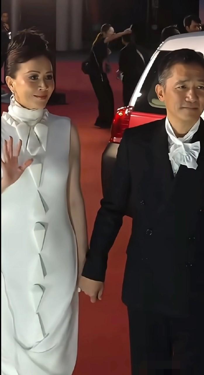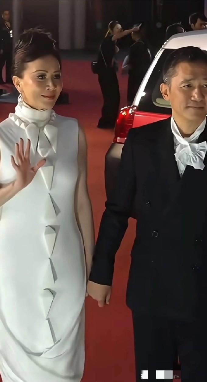 刘嘉玲这条白裙子是有点可爱过头了,圆滚滚的确实像只蚕宝宝!不过她本人倒是永远精神饱满,状态满分。旁边梁朝伟先生嘛,还是熟悉的腼腆笑容,像极了被拉来参加家庭聚会的内向小朋友。这对夫妻一个热情似火,一个安静如水,互补得还挺妙!#刘嘉玲造型# #梁朝伟#刘嘉玲 梁朝伟#红毯造型