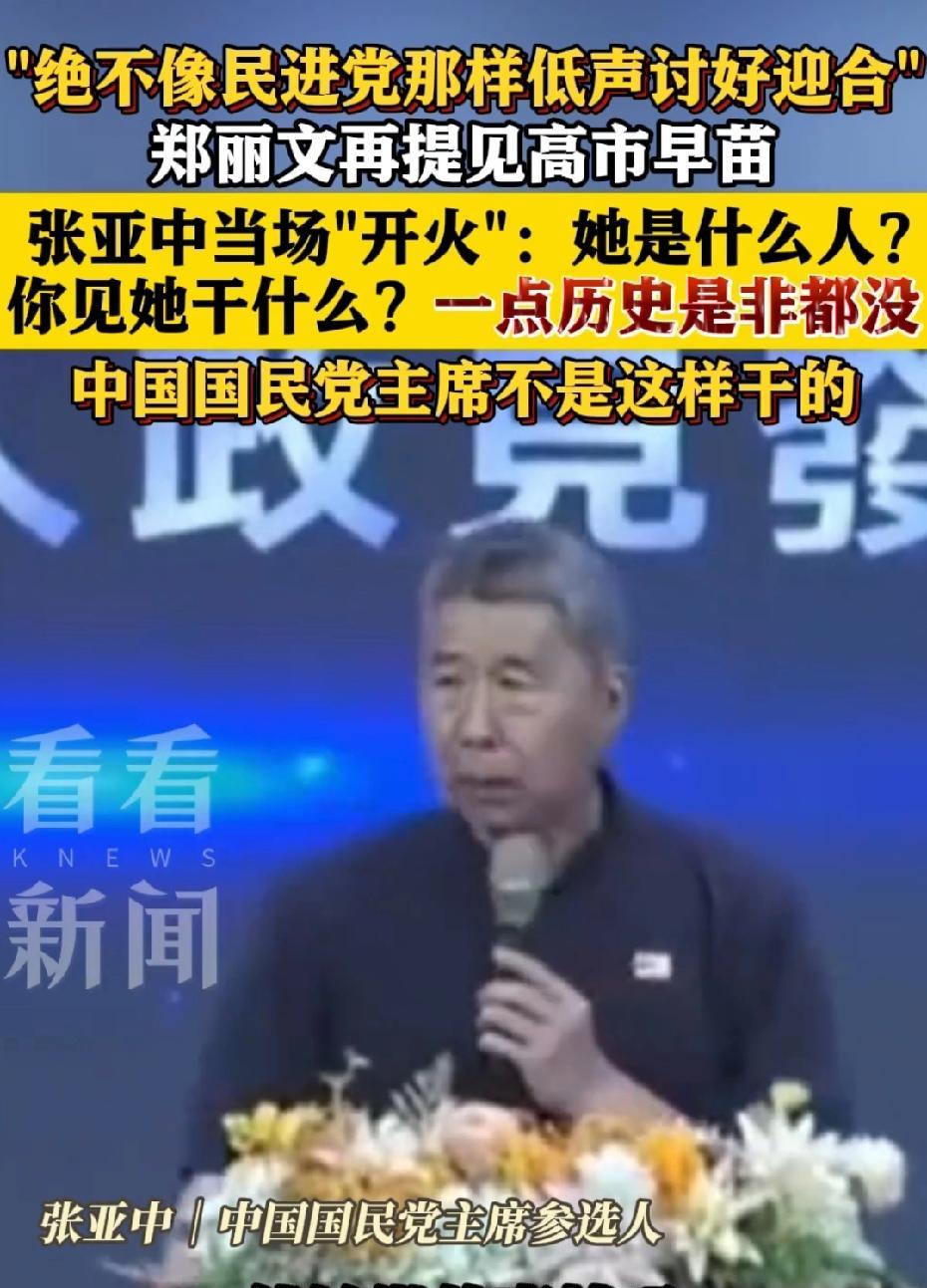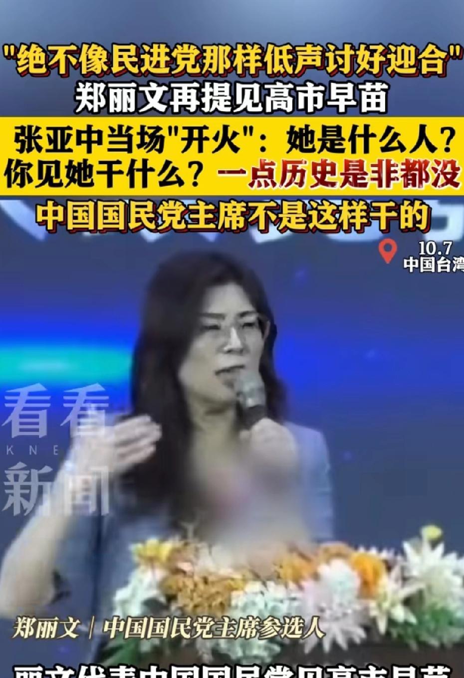 同一个地方摔两次!郑丽文越描越黑,高市或成压倒她的那根草? 今天东方挚云这篇小作文,聊聊岛内蓝营选举那些事。 尽管蓝营选举是多选一,但各种信息叠加看,郑丽文无疑胜算很大,甚至第三辩论没开始,就有岛内媒体说她十拿九稳。 然而,人算不如天算,日本的变天,让她的气势如虹,瞬间泄气。 更让人意外的是,面对质疑,她居然玩起了迎难而上,再度提及要见高市早苗。 如果说第一次是无心之过,那第二次是什么呢? 赌气? 如果是这样,她的气性太大了,这是在拿前程开玩笑。 如不是,而是给第一次“粉饰门面”,那越描越黑。 有一说一,张亚中那一句,一点历史是非都没有,可以说一语中的。 这暴露了她没有一个正确的是非观,以及登高望远的智慧。 想想看,今天岛内面临的形势,已不具备“不统不独”空间,这种情况下你见日本首相能做什么呢? 再说,高市早苗坐上首相,她既不会祭拜靖国神社,更不会见赖清德,怎么可能会见你呢? 这一步错的太离谱,难道你想做第二个赖清德? 反观张亚中,他可能不会走到最后,但是他这一拳打的太猛,高市很可能会是压倒郑丽文的那根稻草。 接下来会如何发展?我们一起关注! #郑丽文再提见高市早苗遭张亚中怒怼#