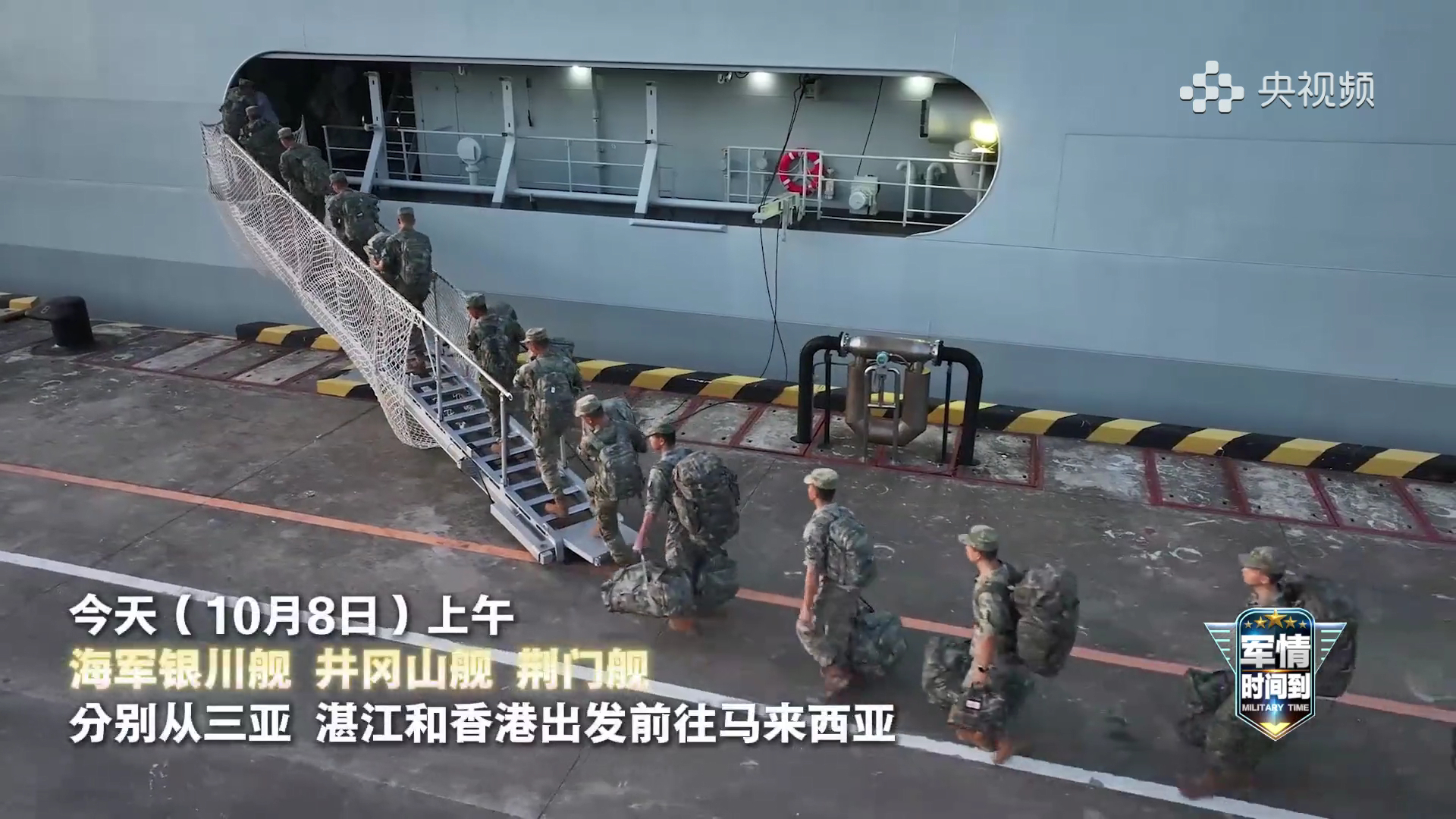 离码头部署,参加中马“和平友谊-2025”联演的071井冈山舰、056A荆门舰、052D银川舰今早分别从湛江、香港、三亚出发