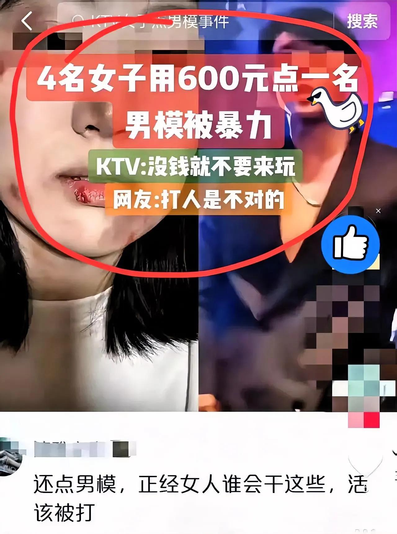 这下是真把 “夜场行规”玩成了敲诈套路! 四闺蜜KTV庆生点男模,明码标着600元起,主动给了680元,没成想不仅遭动手,还被拿所谓“行规”逼要2000元,连未来老公都被卷进这糟心事里。 最让人膈应的从不是钱多少,而是有人把“事前藏着不说的规矩”当抢钱的底气。夜场男模底薪本就几百块,680元早超起步价,所谓“一对四该加钱”的说法,事前不提事后翻脸,本质就是耍流氓,再加上用暴力撑腰,这哪是陪玩,分明是借“行规”敲诈勒索。 更该追责的还有KTV,眼看冲突发生不及时制止,等于默许这种猫腻“潜规则”滋生。法治社会里,没有提前说清的“行规”都是霸王条款,消费者按约定给钱天经地义,凭啥当任人拿捏的冤大头? 你们平时遇到过这种坐地起价的情况吗?是当场报警维护权益,还是有其他应对办法?