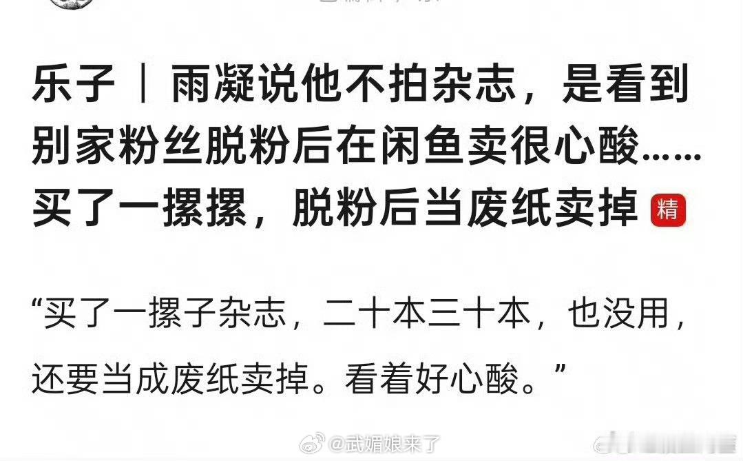 刘宇宁说不拍杂志的原因是看到别家脱粉的粉丝在闲🐟一摞摞地处理杂志很心酸……