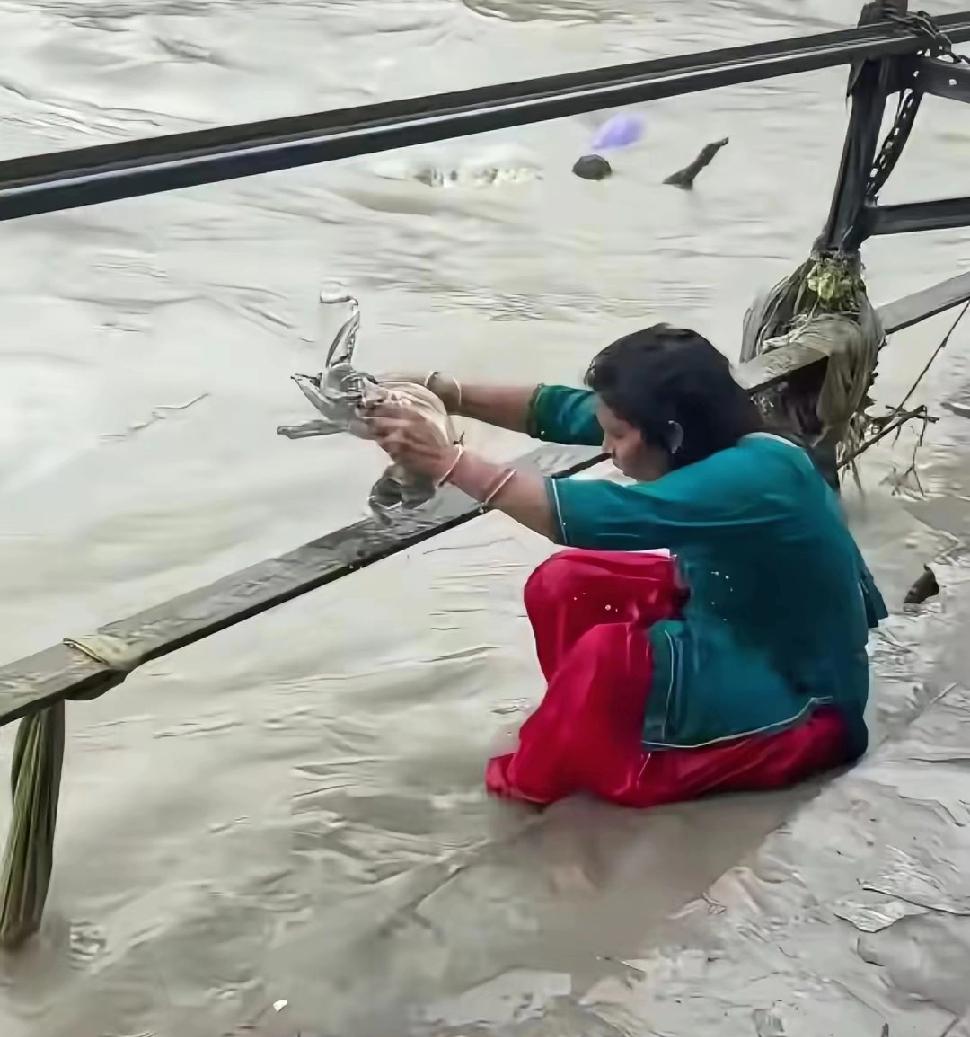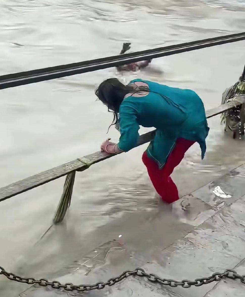 河边见义勇为暖心一幕! 大妈在河边散步,突然上游冲下来个溺水的人。大妈说自己不会