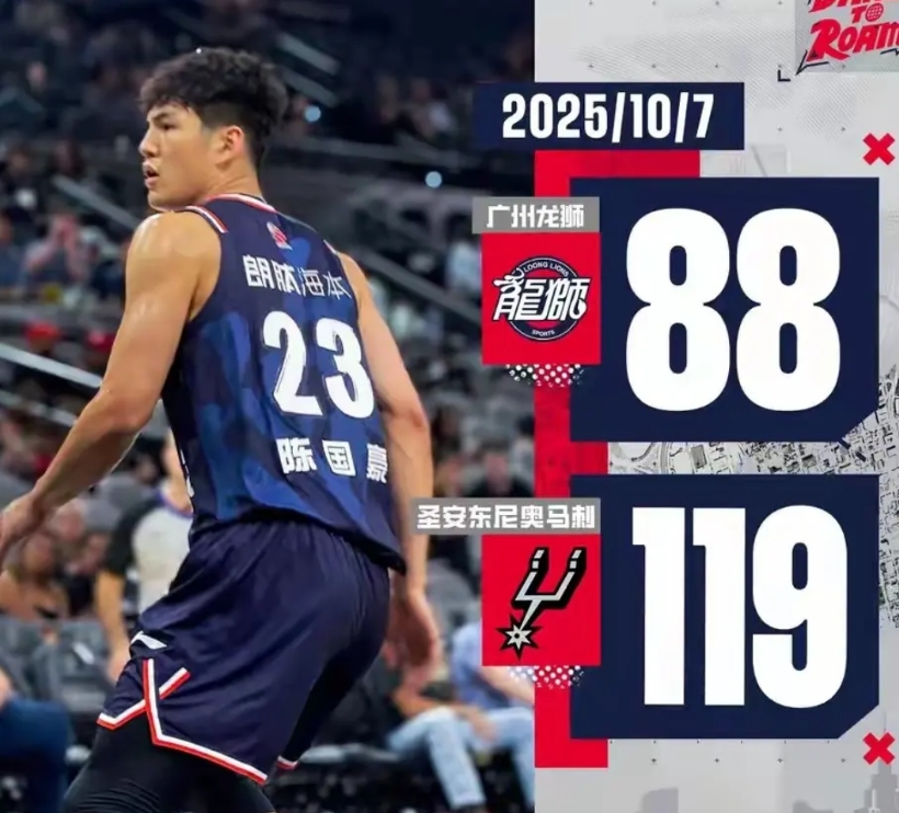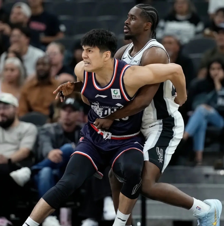 nba季前赛,广州龙狮队大战nba马刺队,虽然广州龙狮队输了31分,但是队内的陈国豪和管子煜都有亮眼表现。 最起码这俩人敢打,敢拼。敢对抗, 陈国豪得了14分,为国内球员最高分。表现抢眼。 管子煜也是突破犀利,面对马刺队的状元郎文班亚马。毫不害怕,直接一步过他。投篮也比较过断,这年轻人,行! 将来必成大器! 搞不明白,这么好的练兵机会,郭艾伦和徐昕为啥没有参加? 有nba球队陪你们过招,岂不提升自己的大好机会吗? 看看陈国豪,和管子煜,肯定有大收获! 加油,看好青年军!