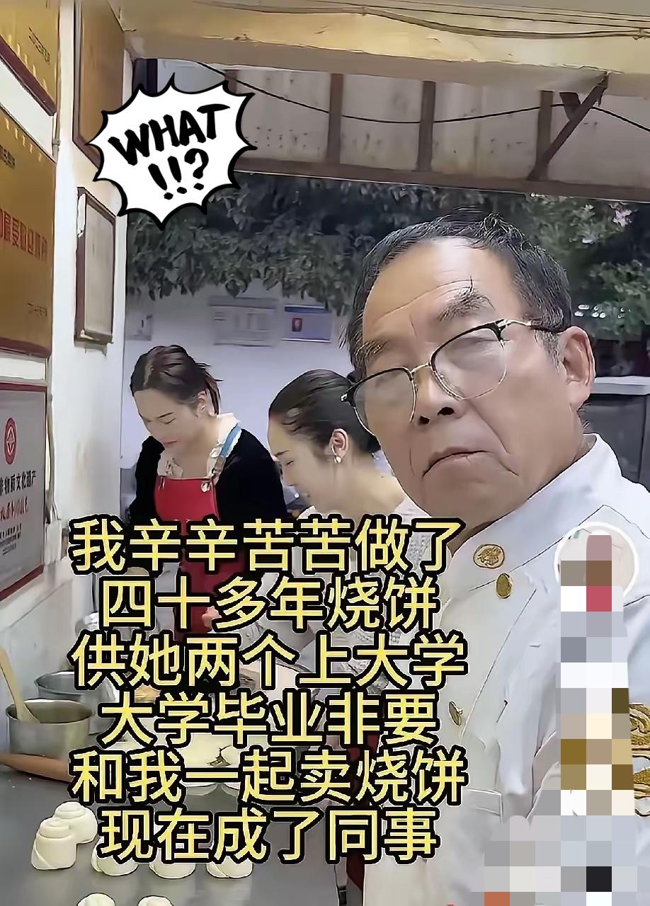 卖40年烧饼的大爷,怕是没料到这结局!熬白了头供俩女儿读完大学,结果姑娘们没坐办公室,转头回摊儿跟他一起揉面烤烧饼——可这“不体面”的选择,偏偏活成了最暖心的答案! 大爷当年揣30块钱从农村出来,寒冬冻裂手抹猪油接着干,酷暑守着烤炉汗滴进面团,就盼着女儿们能脱离苦日子。俩姑娘也懂事,从小在摊边写作业,立志要让爹歇着,可毕业后面临的却是“简历石沉大海”“经验门槛卡脖”,大城市十平米出租屋、泡面当晚饭的日子,让她们看清了现实。 谁能想到,回烧饼摊的决定竟盘活了一切?大女儿用管理知识优化流程,小女儿开网店做短视频,老手艺配上新法子,烧饼卖遍周边还接了批发单。大爷从起初的无奈,到后来主动问“线上卖了多少”,终于懂了:体面从不是坐办公室,是用知识把日子过红火,是一家人守在一起的踏实。 你看这“烧饼摊逆袭记”,是不是戳中了很多打工人的心?你觉得“体面工作”的真正定义是什么?