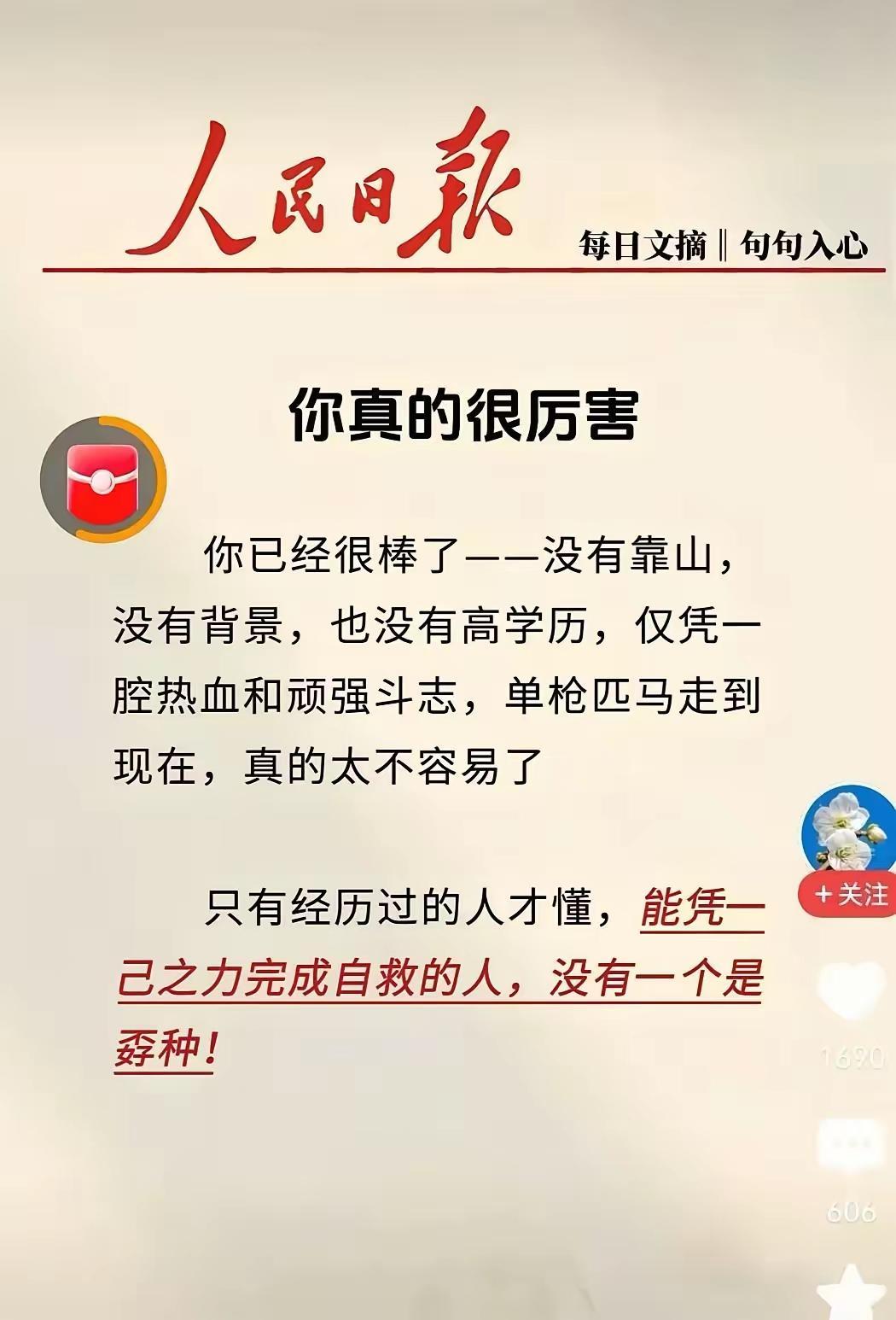 你已经很棒了,没有靠山,没有背景,凭借着自己的努力,自己的优秀,自己的满腔热血,自己的顽强的斗志,单枪匹马闯出一条路来,虽然陷入了黑暗,但是不认输,想用自己微薄的力气对抗黑暗,无奈势单力薄,最终失败了,但是你在所有人眼里依然还是英雄,是一座丰碑,我们永远记得你 网友评论: 大家不要忘了我们的国歌,我们可能时时刻刻都处于最危险的时刻。无论何时都要爱国!这么铁骨铮铮的一个大好青年,他是我们的同胞啊!他那么美好,不能就这样不明不白! 怎么会忘记,已经在我们心中深深的打上烙迹,你不再是一个人战斗,你身后还有我们 单枪匹马的奋斗过程,就是英雄的成长之路感谢人民日报对铺路石的认可,对人民的鼓励