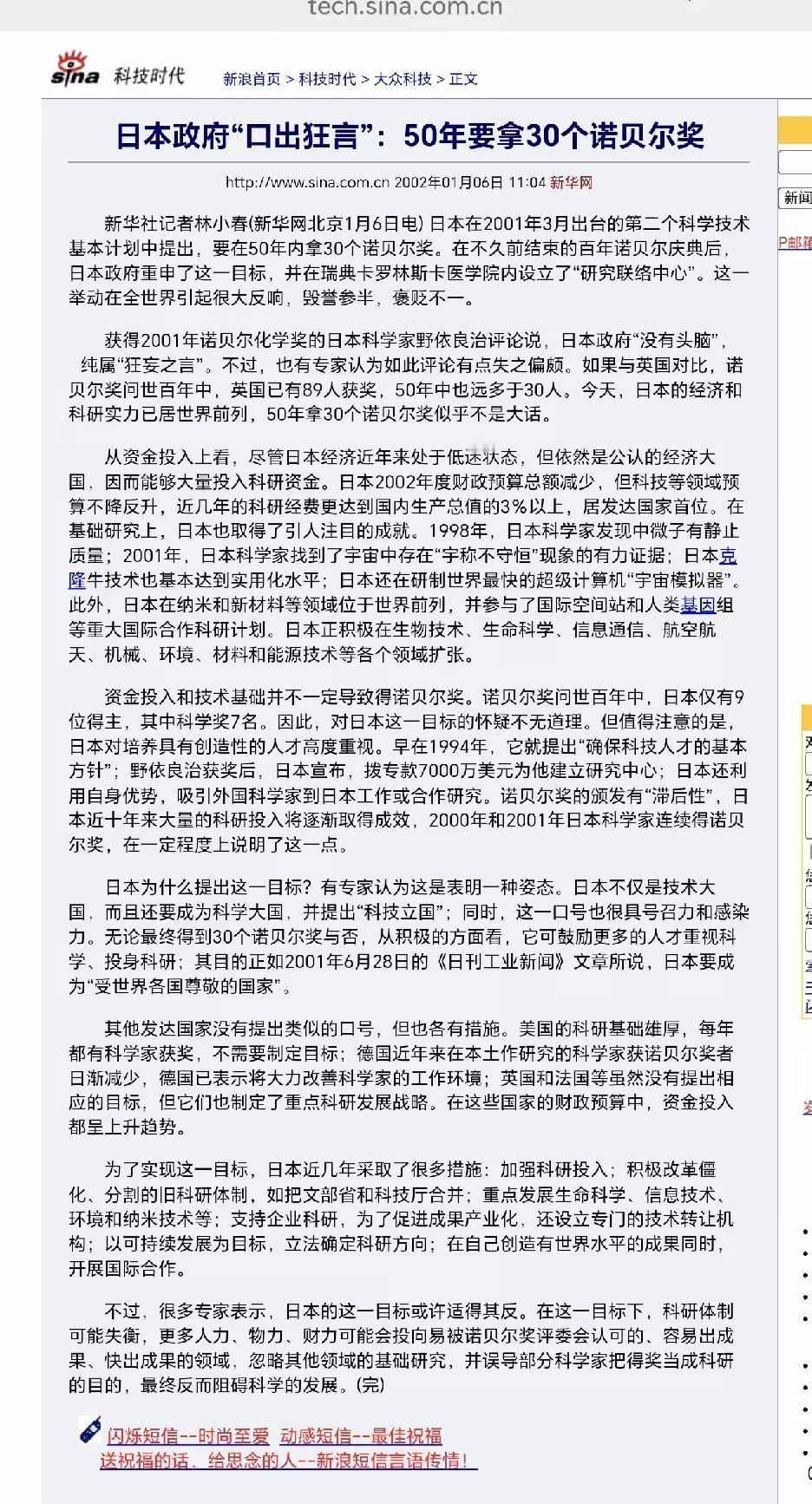日本人吹牛的诺贝尔奖 居然完成了 2002年日本男足也很一般 网友评论: 诺奖有两个问题,一是政治因素太浓厚。二是有20-30年滞后性,在相对不加政治因素进去,30年后中国获奖人数会成井喷式出现。 没有诺贝尔奖,中国发展比谁慢了吗?中国的科技发展停滞了吗?不是看不起欧贝尔奖,但不得不说,现在所有由西方组织的奖项,越来越多的政治话。 好像没有诺贝尔奖,整个地球就转不了似的!诺贝尔,在某个角度来讲,也成了科技殖民的工具