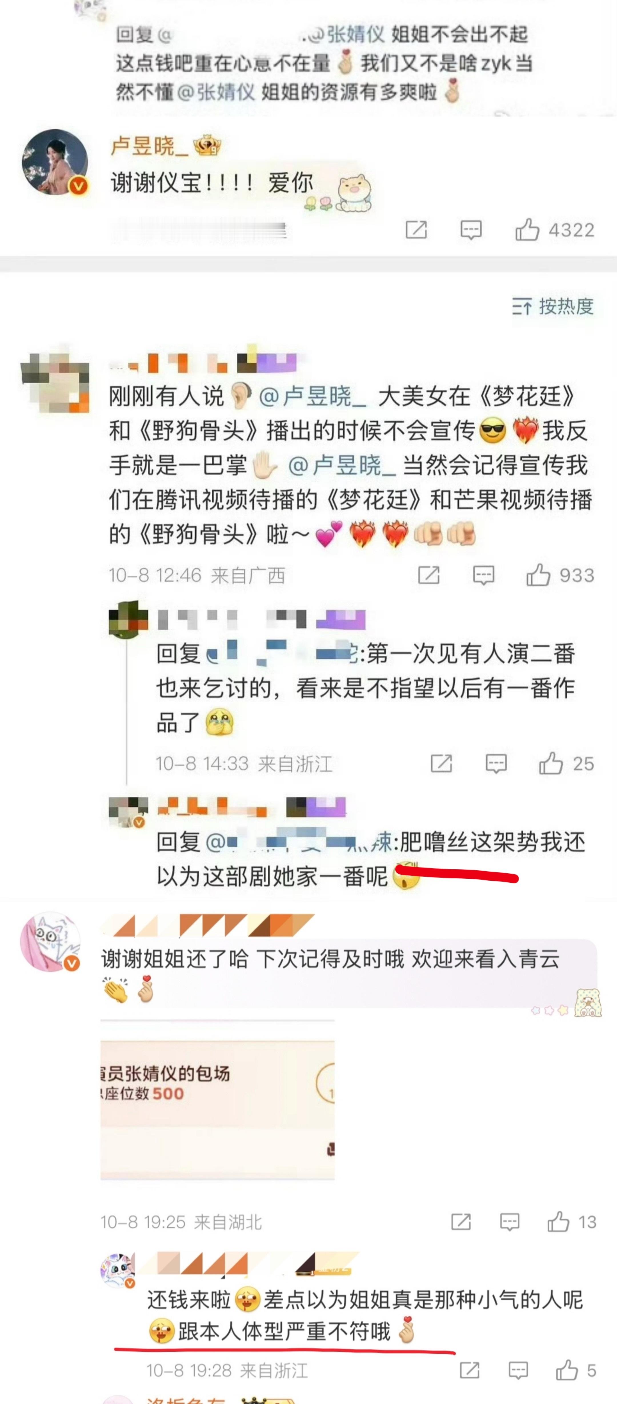 卢昱晓以前支持张婧仪的电影,张婧仪这次发微博宣传卢昱晓新剧并且云包场。