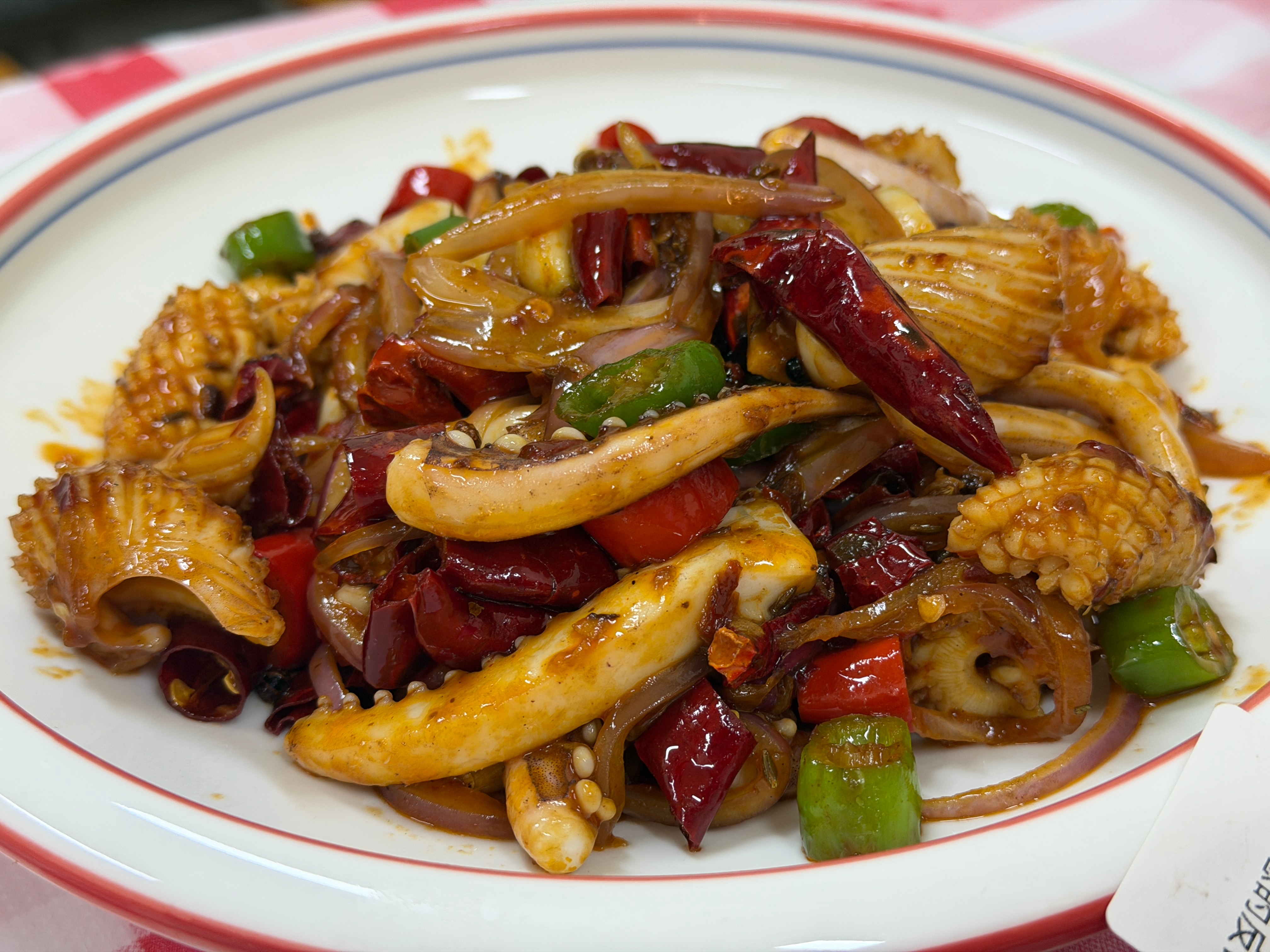 点了口味虾、油焖虾、钉螺、爆炒鱿鱼
