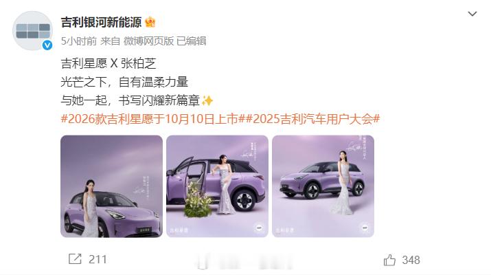 2026款吉利星愿10月10日在杭州举行的2025吉利汽车用户大会上正式上市,张柏芝成为吉利星愿全球代言人,问问编辑老师啥时候去,多拍两张[憧憬]吉利星愿新能源汽车