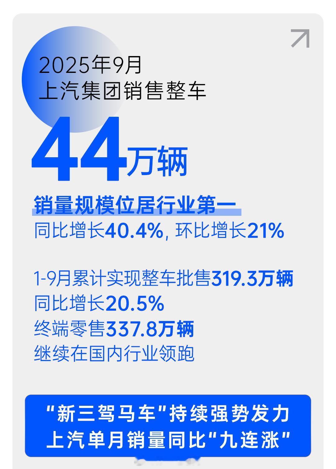 月销增长:今年以来,上汽月销量已实现同比“九连涨”