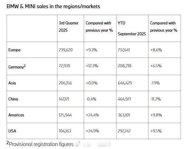 MINI品牌:增长迅猛,第三季度交付 72,376辆,同比大幅增长 37.5%,所有销售区域均实现增长