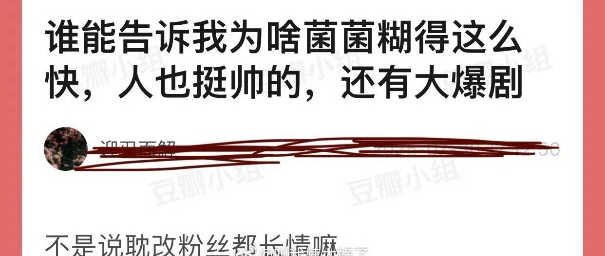 网友问,菌菌为什么糊得这么快?人挺帅的,还有大爆剧,不是说耽改粉丝都长情嘛?
