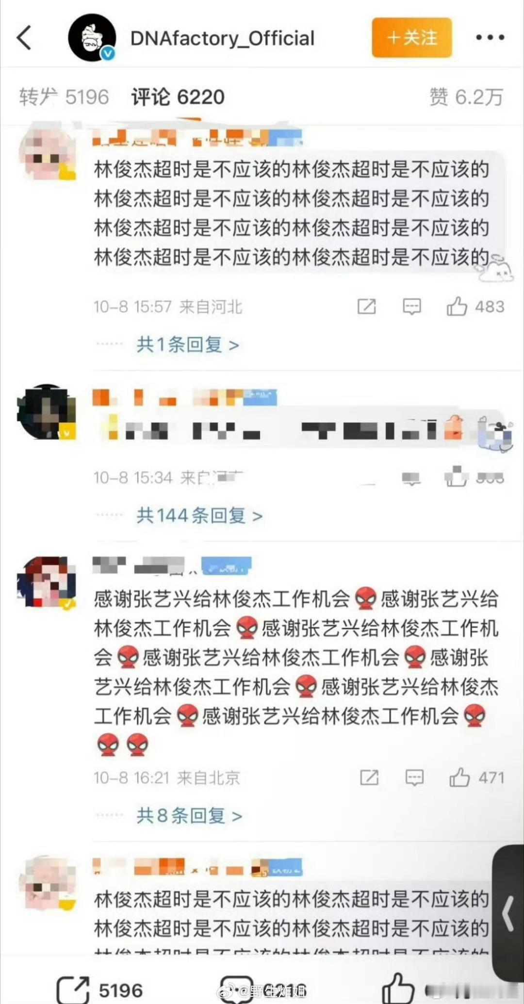 又一起因为音乐节超时引发的事故,南京DNA音乐节后,张艺兴粉丝跟林俊杰粉丝正在讨论到底谁超时,谁给谁工作中……