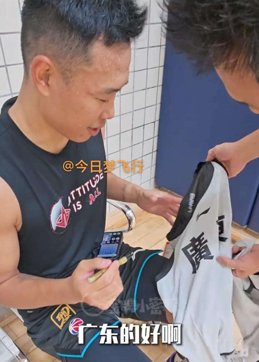 广体记者关辛今晚发布广东队探营视频! 今晚,广东体育频道专项记者关辛,在个人社媒发布了去宏远南城训练馆探营的视频,并趁机收集广东全运队球员的球衣签名。 见到关C傅,身着北京队训练服的赵睿连忙解释:还没发全运会队服呢!去拍胡明轩时,胡椒仔说,先拍北京队的。关C傅说,拍完北京队的了,现在拍队长。杜润旺对关C傅涚,晚上有点事,头发长了。关C傅取笑驴哥:头发长了,不要剪,可以适当遮俺脸部的长度。 作为跟队记者,关C傳和广东队队员之间永远都是无拘无束的。 采访完并和崔永煕合照后,关C傳说,追星成功!哈哈,何止追星成功,得到所有球员的签名球衣,才是满满的收获。