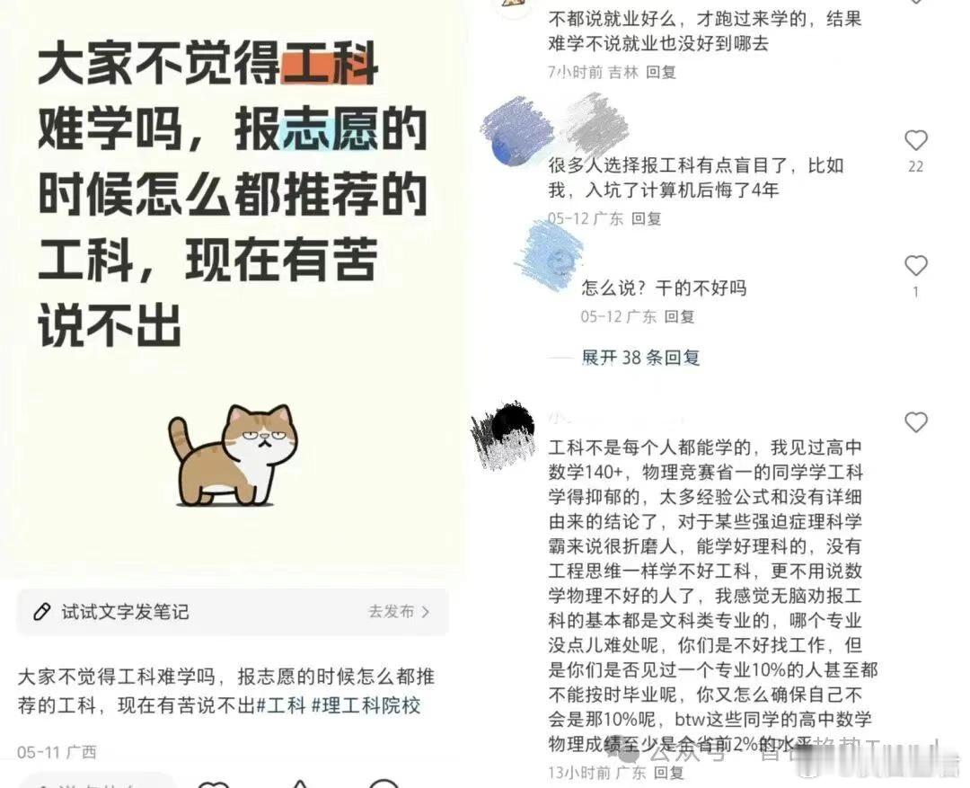甚至有网友表示,理工科专业里,有10%的同学都不能按时毕业,哪怕他们曾经是全省前2%的水平。