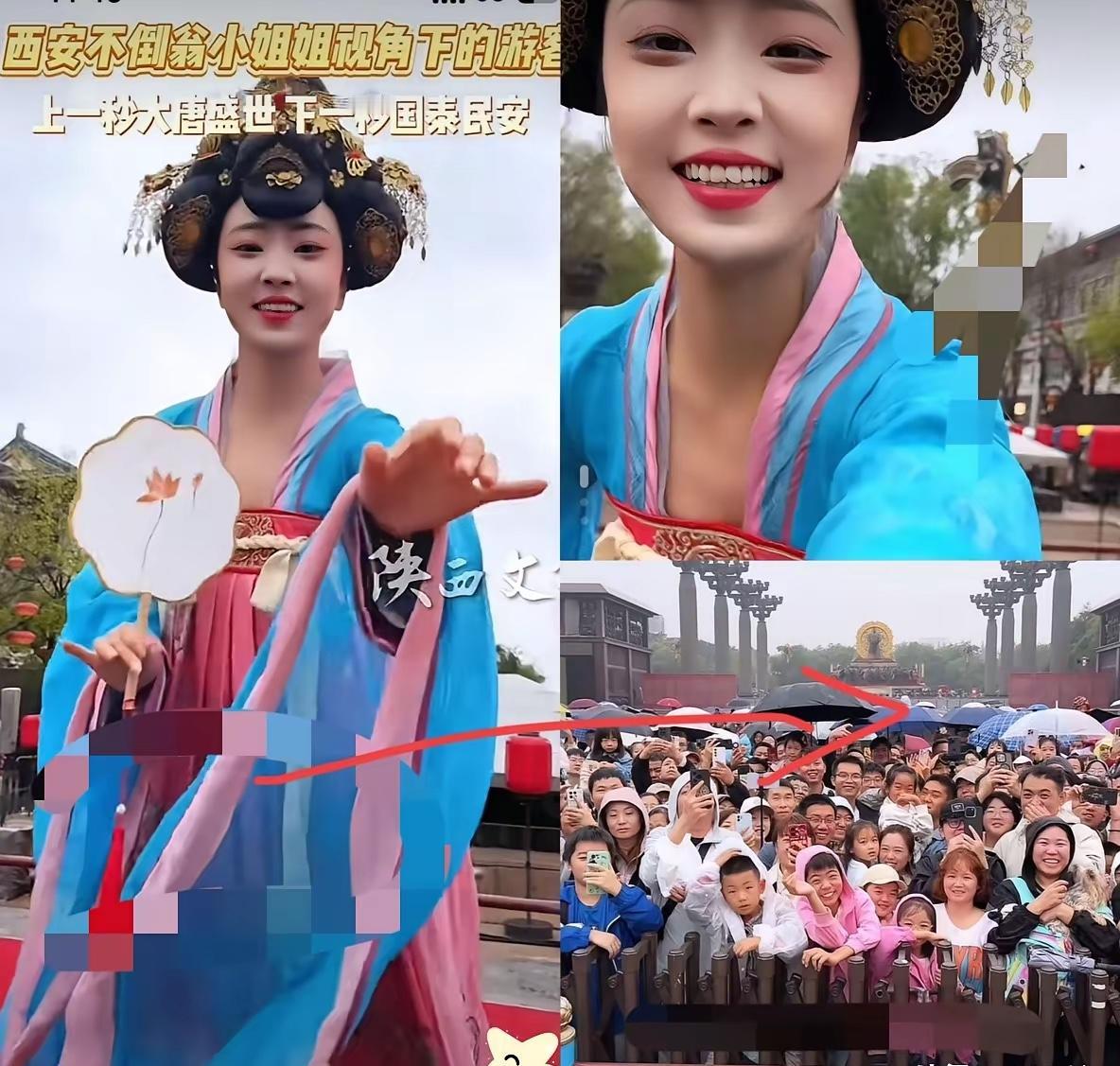 近日,西安大唐不夜城,不倒翁小姐姐表演时,竟然一时兴起,直接把游客手机拿过来翻转镜头,本来大伙还懵着,下一秒全被屏幕里的画面戳中,满屏都是笑! 穿汉服的姑娘叼着糖葫芦笑,挽着手的老人比着耶笑,蹦跳的小孩露着牙笑,连雨丝都没浇灭这股子甜! 做这个即兴动作的姑娘叫小唐,后台柜子里还堆着三副磨破的护膝。她刚练不倒翁那阵,每天要在半米高的底座上站满2小时,左腿绷着劲找平衡,右腿得轻轻踮着配合旋转,不到一周膝盖就青得像摔过跤,贴膏药时疼得龇牙,却还是盯着镜子里的自己练微笑——导演说“不倒翁要像从画里走出来的,但笑不能假,得暖到游客心里去”。 那天雨下得软,她看见前排穿灰色卫衣的小伙子举着手机,胳膊肘抵着同伴的肩膀才没晃,屏幕里只框住她的裙摆,旁边穿粉色汉服的姑娘、举着棉花糖的小孩全没拍进去。小唐脑子一热就伸了手,接过手机时还听见小伙子小声嘀咕“别掉了”,谁料镜头一转,满屏的笑脸全涌了出来:汉服姑娘的糖葫芦糖霜沾在嘴角,俩老人挽着手比耶,爷爷的手还在微微抖,穿背带裤的小孩踮着脚,门牙缺了一颗,笑起来能看见小舌头。 这一下,连小唐自己都忘了按“剧本”走。她之前练过无数次标准动作:伸手牵游客的手、递一颗包装好的唐式糖果,游客配合着拍照,拍完就挪步去下一个打卡点。可那天不一样,小伙子先“哇”了一声,接着周围的人全凑过来看屏幕,笑声裹着雨丝飘得老远,有个阿姨还举着手机喊“姑娘,也帮我转一下呗”。她后来跟同事说,那天胳膊举得发酸,心里却甜得像吃了蜜——比收过的任何“好评”都实在。 其实现在做文旅挺难的。去年南边有个景区照搬“不倒翁”,让演员站在那儿摆姿势,游客拍两张就走,没俩月就没人去了。小唐他们培训时,导演总拿这事当例子:“不是穿件汉服就是大唐,游客来不夜城,看的不是‘表演’,是想找个地方放松,能笑着跟家人拍张照,能记住点不一样的东西。”小唐把这话记在心里,自己攒钱买了对银镯子,转起来叮当作响,有次一个小女孩拉着她的袖子问“姐姐是仙女吗”,她蹲下来笑着说“我是喜欢糖葫芦的姐姐呀”,后来女孩妈妈发朋友圈说,孩子回家后吵着要学汉服的来历,这比任何“网红流量”都让她觉得值。 现在小唐的银镯子上多了个小铃铛,是那天缺牙的小孩硬塞给她的,说“姐姐的笑像铃铛一样好听”。后台的护膝还在换,但她再也没听过“别太即兴”的提醒——导演拿着那段翻转镜头的视频跟所有人说“这才是咱们要的不夜城”。毕竟啊,游客记不住多少华丽的表演,却会记得那个雨天里,帮自己把满场笑声装进手机里的姑娘。 各位读者你们怎么看?欢迎在评论区讨论。