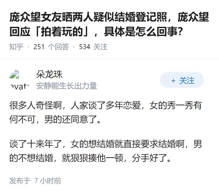 庞众望女友晒两人疑似结婚登记照,庞众望回应「拍着玩的」,具体是怎么回事?