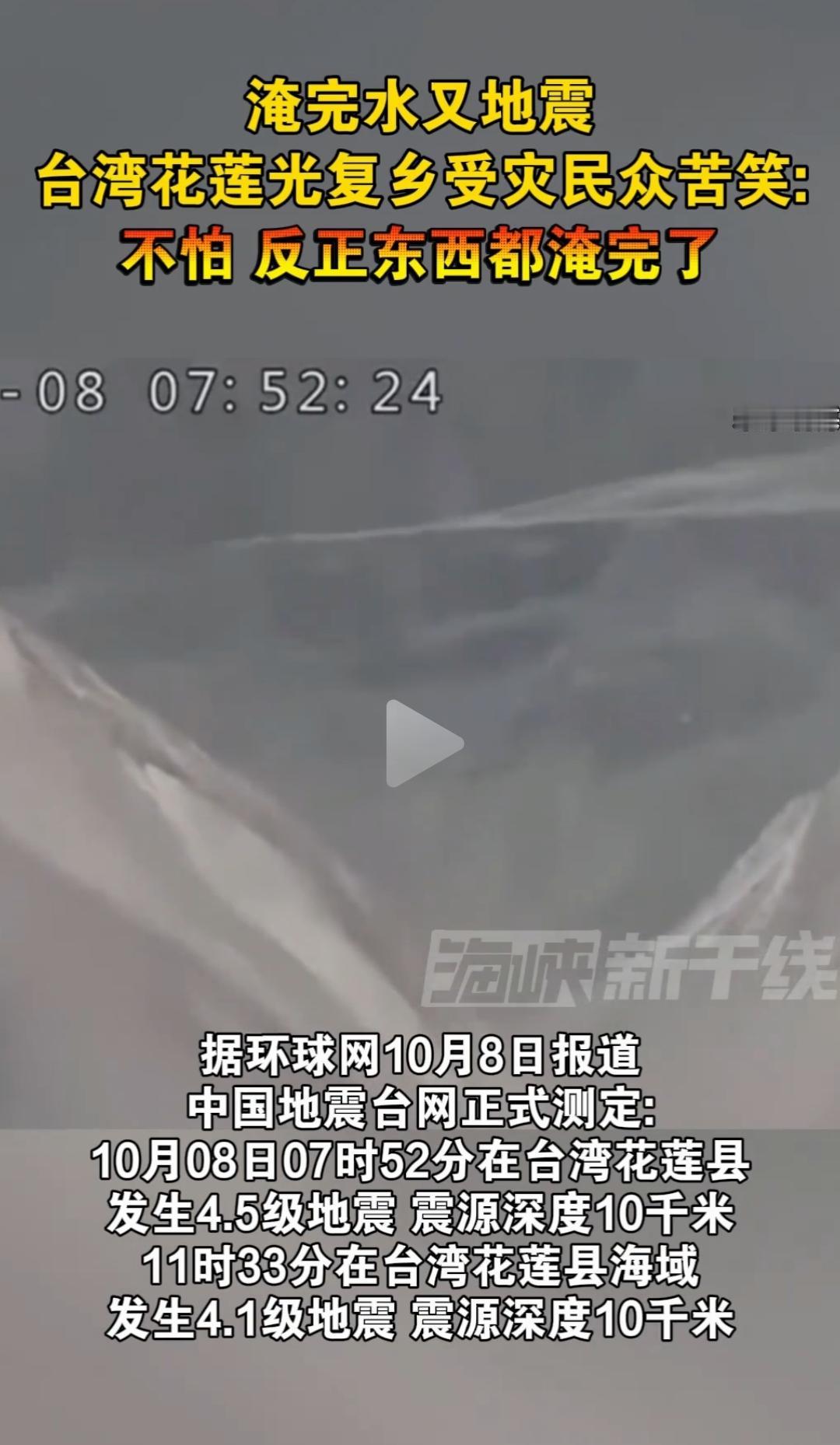 台湾省花莲县这地方真的多灾多难,刚被水淹又来地震。但这都多少天了,救援的大型机械才到灾区现场,感觉和日本救援水平有得一比。年初不是有个日本老年司机掉坑了吗?本来出事时还活着,硬生生用时间拖死了。几个月都没有搞定。 而且大陆对花莲老百姓的捐款,他们硬是只字不提啊。你说民进党不提也就罢了,国民党也不提。这不就是和民进党一丘之貉吗? 都是这样的人在玩政治,台湾老百姓不吃苦才有鬼了。 点右上角关注我,我们一起去看这个魔幻的世界