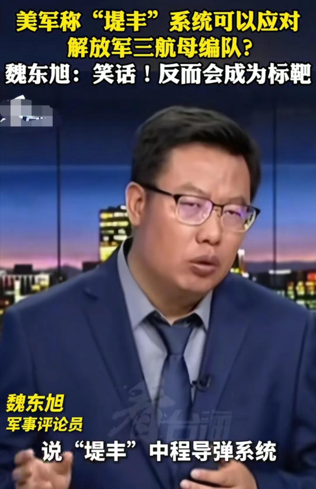 看到军事专家魏东旭在节目中回答关于美军为了不断介入台海和加强亚太军事实力的目的,他们将“堤丰”系统等核心武器部署在中国周边,以此妄图达到围堵中国的目的。魏东旭说到:这只不过是美军的强弩之末罢了,它们还说一个“堤丰”系统可以对付解放军的三航母编队,这简直就是痴人说梦。就凭你三四百公里的射击范围,还想要和航母编队相较量,就是不自量力,痴心妄想,最后也一定会成为航母舰载机练手的靶标而已。#堤丰系统# #聊聊美军那些事# #魏旭东#