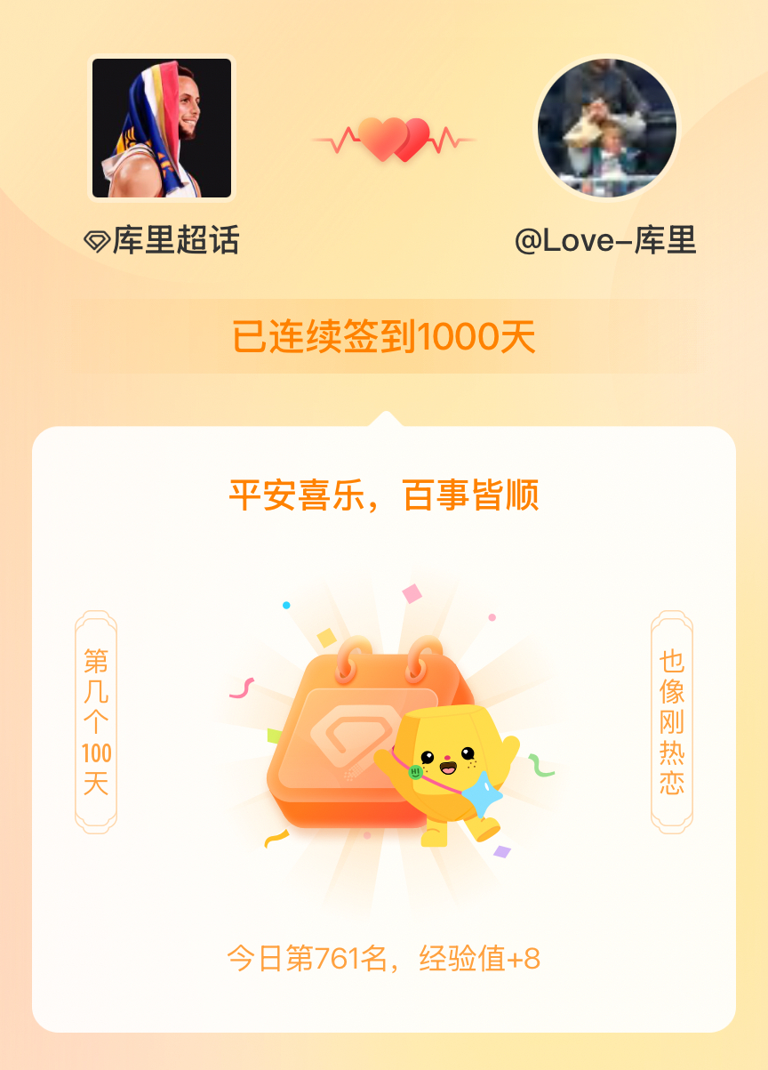 我在库里[超话]连续签到1000天啦[喵喵]