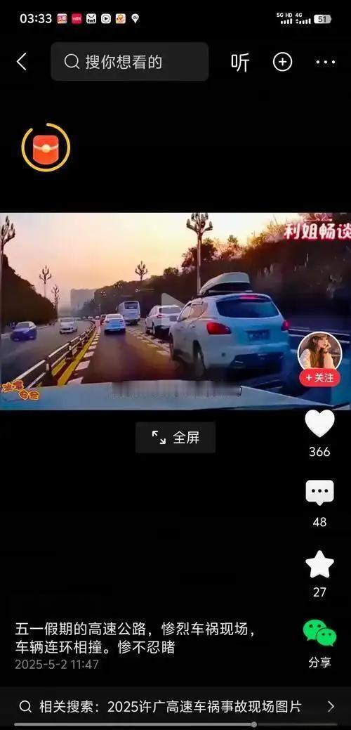 刷抖音看到国庆高速上连环撞车的视频,真是看得人心惊肉跳。好几辆车撞得稀巴烂,有的