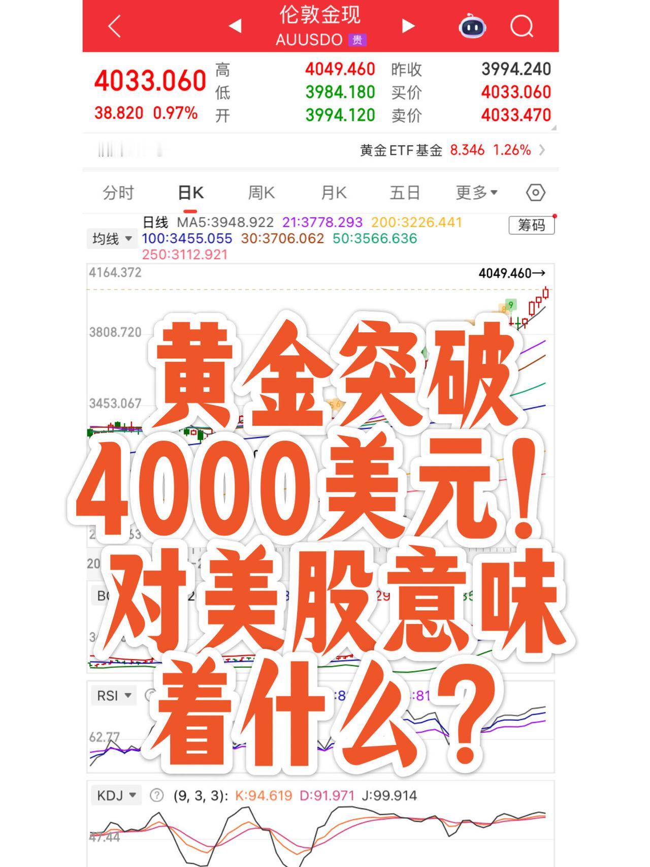 金价冲上4000美元了!这事对美股有啥影响?简单说三点。 首先,这明显是避险情