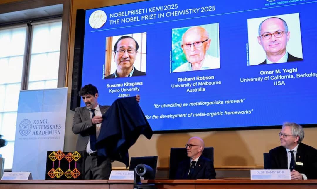墨尔本大学教授理查德·罗布森与另外两名科学家凭借“在金属有机框架(MOFs)领域的开创性研究”获得2025年诺贝尔化学奖。 罗布森教授与北川进和奥马尔·亚基的这项研究奠定了利用该技术从大气中吸收温室气体,或从沙漠环境中提取水分的基础。