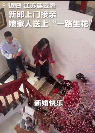 新郎上门接亲,没有堵门,没有为难,只有“一路生花”,本就已经让人感到很是暖心了,