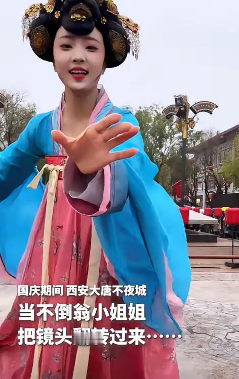 近日,西安大唐不夜城,不倒翁小姐姐表演时,竟然一时兴起,把游客手机抢了过去,将镜