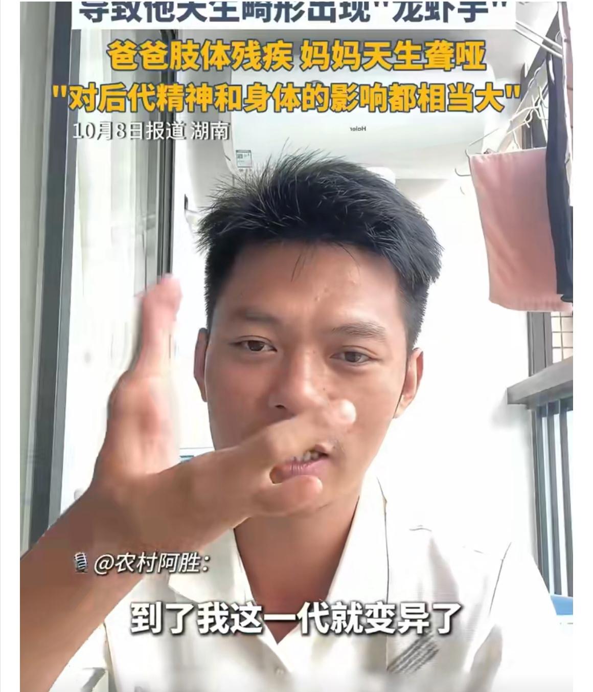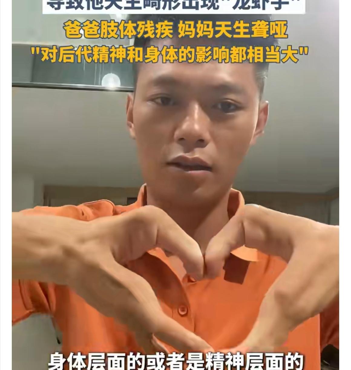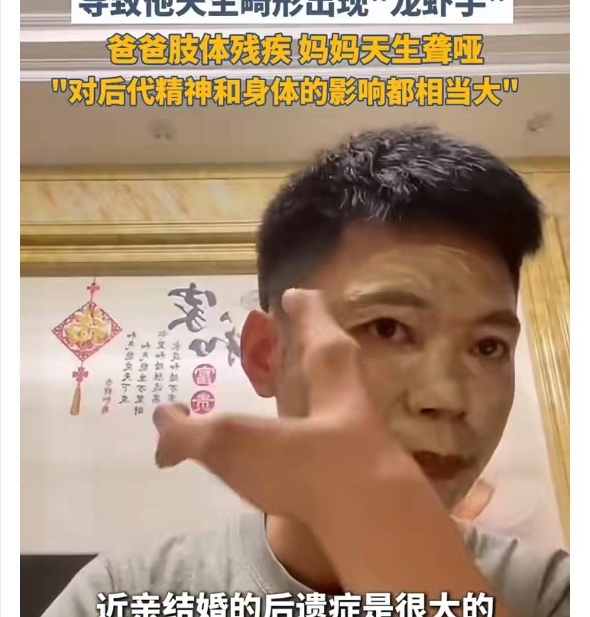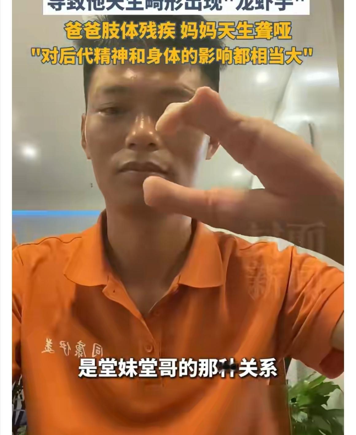 近亲结婚带来的遗传风险,在这个案例里展现得淋漓尽致,令人痛心。科学早就证实,近亲之间携带相同隐性致病基因的概率极高,结婚后后代出现畸形、遗传病的可能性会大幅增加。案例中男子的“龙虾手”、母亲的聋哑、父亲的残疾,这些叠加的不幸并非偶然,而是近亲结婚埋下的定时炸弹,不仅让个体承受痛苦,更让整个家庭背负沉重的枷锁。 这样的悲剧并非个例。以前在一些相对闭塞的地区,受传统观念影响,存在表兄妹结婚的现象,有的家庭就出现了孩子智力低下、身体发育不全等问题,一辈子都需要家人照顾,整个家庭都被拖入困境。这些活生生的例子,都在警示我们:近亲结婚不是“亲上加亲”,而是在拿后代的健康和幸福赌命。 法律明确禁止近亲结婚,这不仅是对个人的保护,更是对社会和未来的负责。打破落后观念,尊重科学,才能避免这样的悲剧重演。毕竟,每个生命都值得被温柔以待,不该一出生就被遗传缺陷的阴影笼罩。