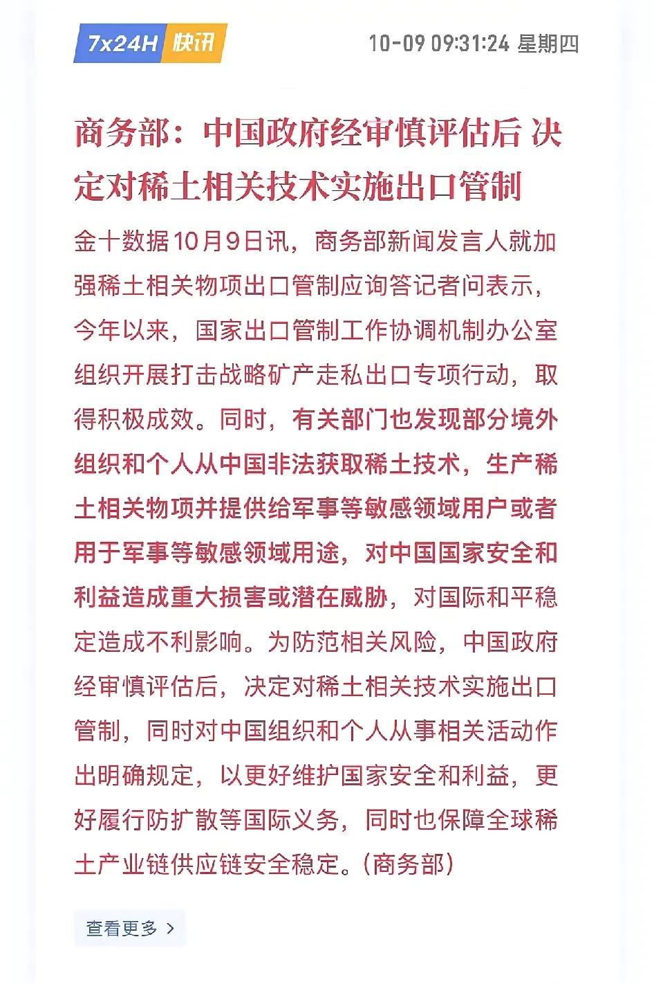 爽翻了!!中国宣布对稀土相关技术出口实施管制! 美内政部长道格·伯格姆昨天接受媒体采访时表示美国要打破中国对稀土材料的管控,今天中国商务部就明确表示,对稀土相关技术实施出口管制。 这就叫针锋相对。你昨天刚说要打破限制,我今天就宣布全部禁止出口,包括从采矿到提炼的所有技术,就问你服不服? 此前只是对稀土材料进行出口管制,现在对于稀土相关的技术也进行了出口管制。也就是说,美国人想拿到中国的稀土提炼技术,从而突破中国对稀土材料管制的美梦彻底破灭! 不管美国人说得多么动听,他们打压中国的政策是绝对不会变的,他甚至连中国成为世界老二都不能接受,更别提中国取代它成为世界第一。所以两国之间围绕谁来当世界老大这个问题的斗争会一直持续下去。 目前来看通过战争来解决这个问题的可能性不大,所以双方只能拼经济,拼科技,拼文化软实力等等方面。 而在科技方面,中美都有各自的优势,以前是美国单方面对中国实行技术封锁,现在也轮到中国开始对美国进行科技封锁了。这个变化来得比较快,美国人一定会感到不太适应。 有专家认为,未来在科技领域的竞争,主要是集中在核心材料、能源存储和信息传输等方面。而在这些方面,中国都具备与美国一较高下的能力,有的方面甚至已经领先。所以在这样的背景下,中国有底气,也有实力对美国进行技术封锁。 这一天终于到来!美国人也可以尝尝被别人进行封锁的滋味了!这的确是一件扬我中华国威,让美国威风扫地的大好事!