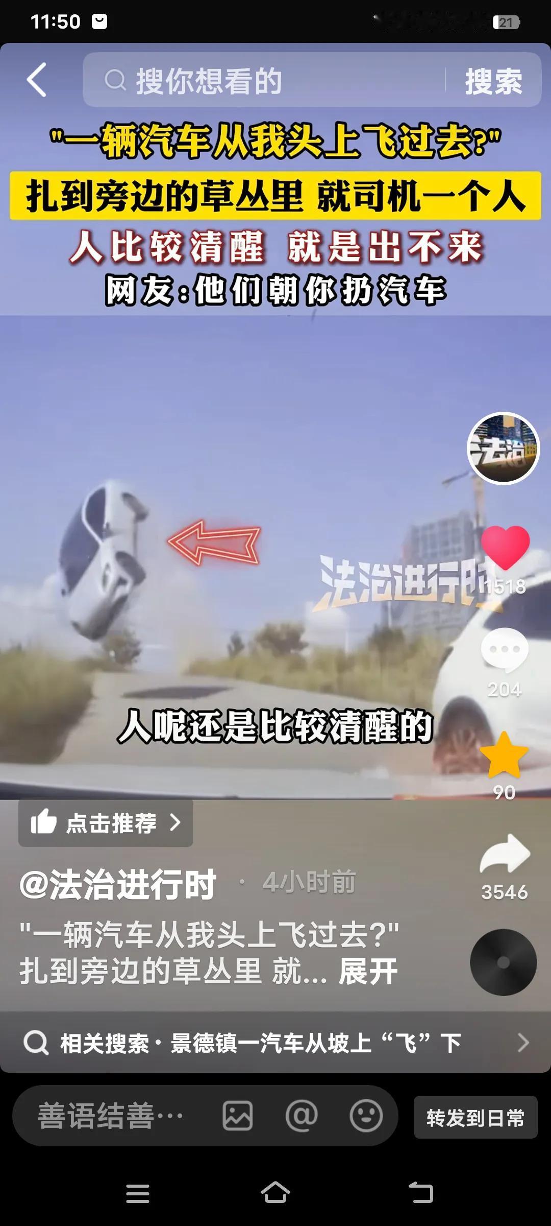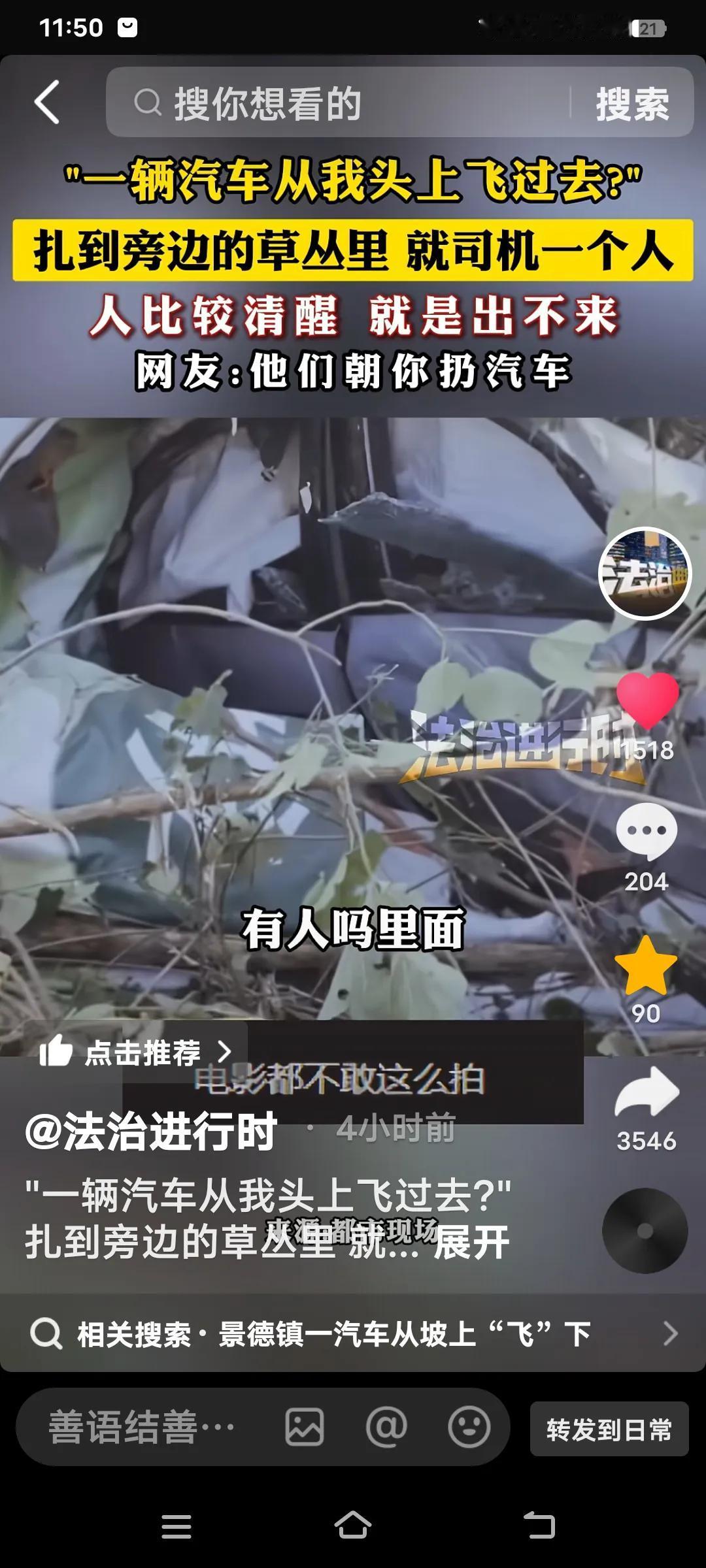 真是令人震惊的一幕!“一辆汽车从我头上飞过去了”。最终,汽车扎进了草丛里,只有司机一个人,人比较清醒,却被困在里面出不来。 事发江西景德镇。看来老天爷在庇佑他,这种离奇的车祸极为少见。人平安比什么都重要,不过评论区里有人说,看来技术差的真别开车。可就算技术再差,也不至于把车弄飞吧!真像是老天跟他开了个天大的玩笑。 真是虚惊一场,感谢苍天保佑!不得不信命啊!离谱车祸现场 江西车祸