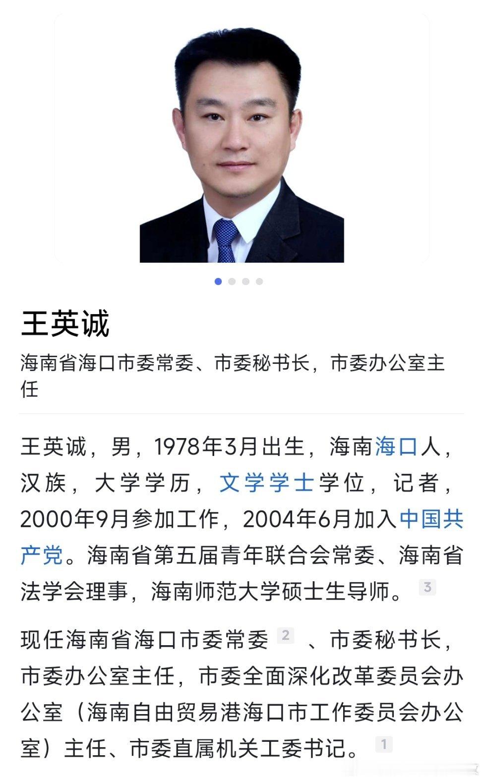 海口市委常委、秘书长王英诚,拟任县(市)党委书记。热点现场