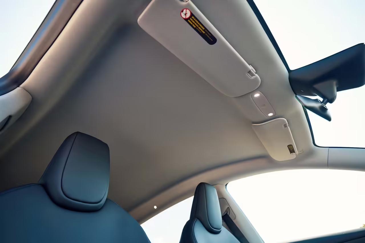 特斯拉ModelY标准版也就是所谓的『廉价版』一些细节: 1、天幕加了遮阳帘,