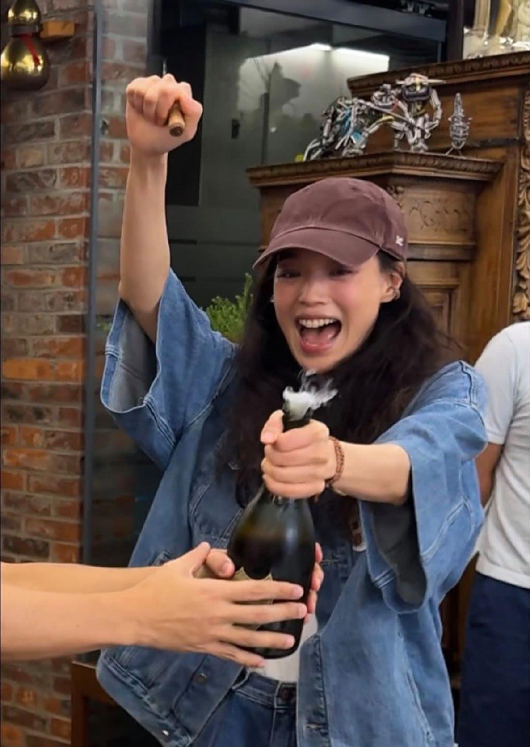舒淇和好友郑伊健一起在香港聚餐,两人在派对上开香槟庆祝,看起来好开心,舒淇都已经48岁了,身材好苗条,皮肤身材都保持挺好的,表情好灵动啊!