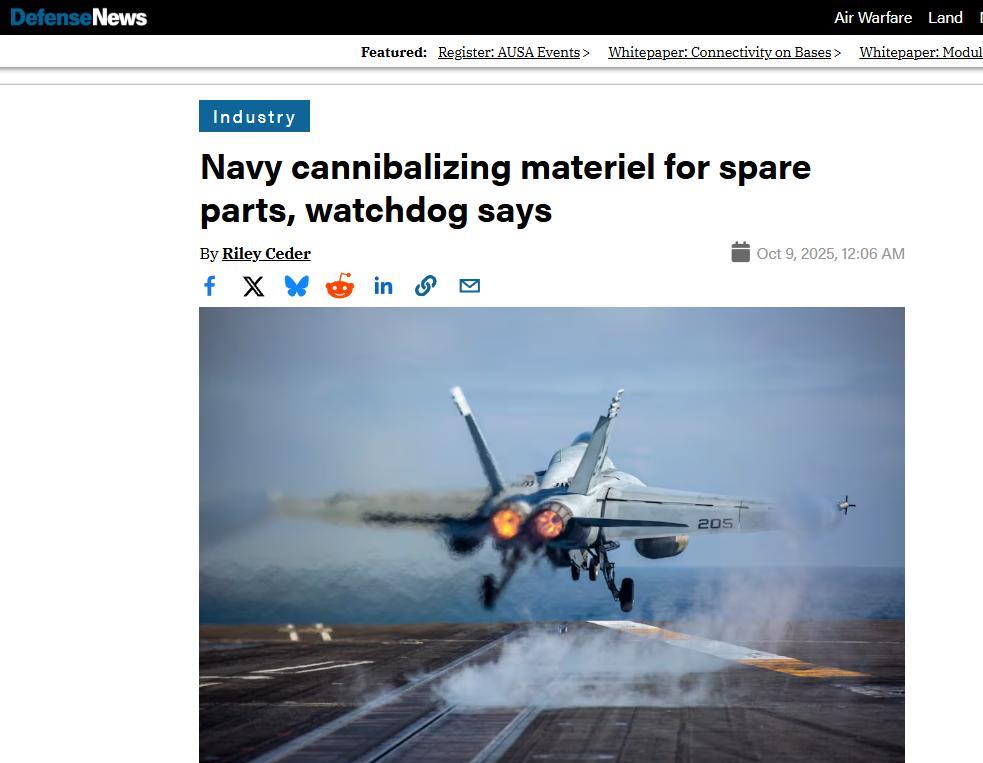 【美国海军拆东墙补西墙,飞机舰船的勤务全有问题,现状触目惊心】 9月29日,美国政府问责局发布了一份内容触目惊心的报告。直指美国海军目前面临的“极其糟糕”的勤务问题。 这个“极其糟糕”并非夸张形容。因为今天的美国海军已经到了要拆现役战机去修现役战机的地步了。 据问责局调查,美国海军为了让执行部署任务的航母,有足够数量的F/A-18E/F超级大黄蜂舰载机可以用,正在拆解陆上基地停飞的机体,从上面获得零部件维护航母上的舰载机。 要说明的是,停飞的机体也是现役机体,只是因为修理等问题暂时不能上航母罢了。而正常情况下,只有退役封存的机体,才能成为“器官捐献机”。 也因此,美国海军这么做是字面意思上的“拆东墙补西墙”。而更要命的是,有这个问题的装备不只是超级大黄蜂,还有F-35 战斗机、濒海战斗舰和弗吉尼亚级攻击核潜艇。 也就现在美国海军不用打仗,真打起来底裤就全露了