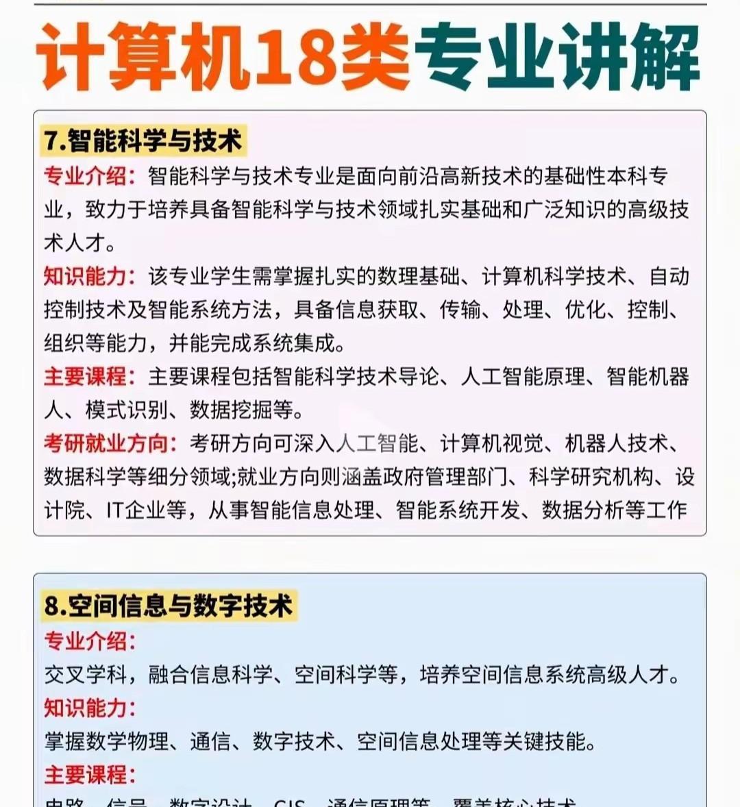 计算机类下面的18个具体专业及其相应的详细介绍,可以好好了解下每个不同的二级专业