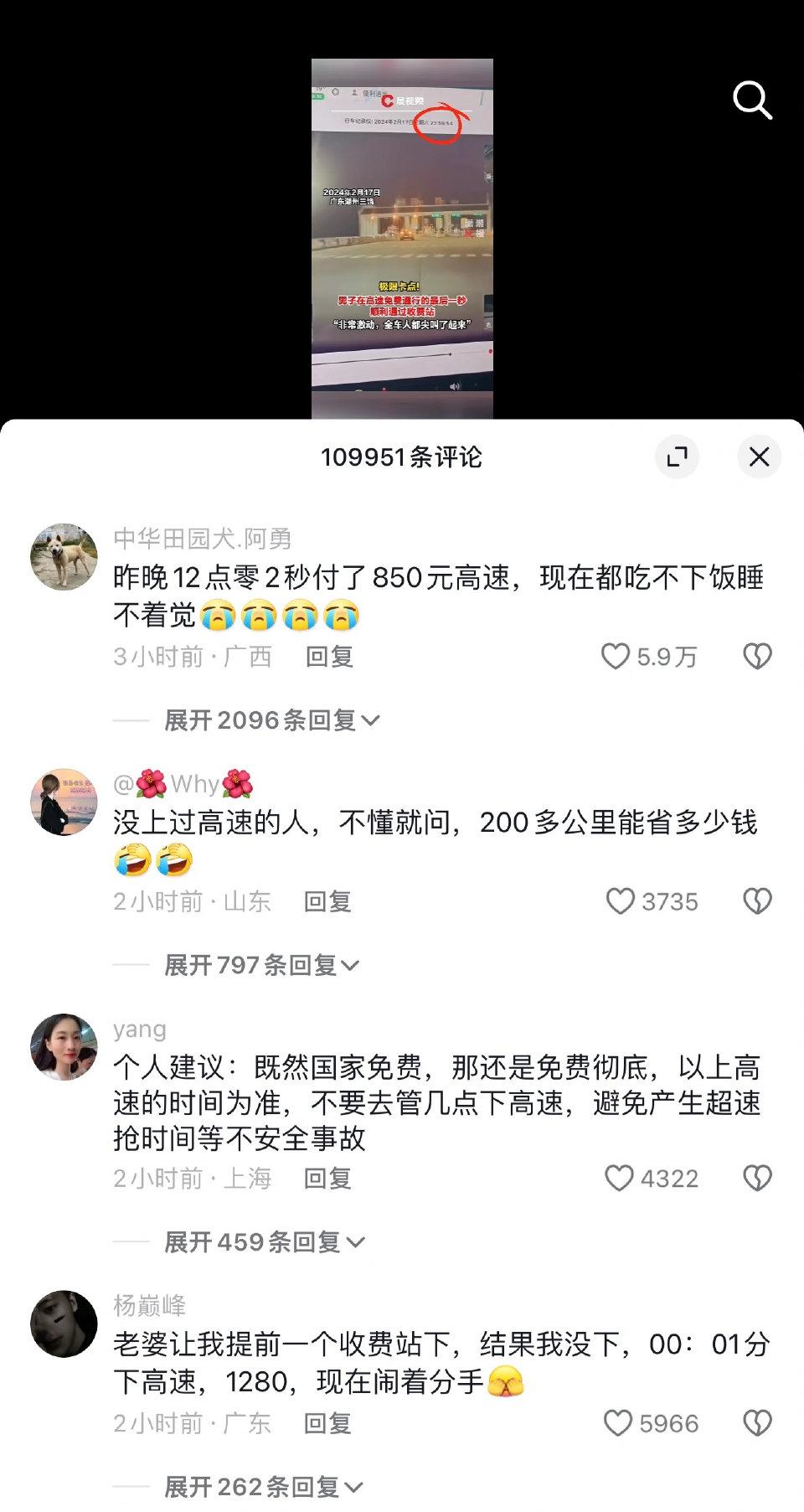 八秒钟,五百多块钱,这大概是最让人肉疼的“时间成本”了。宜昌的陈先生从老家返程,就因为晚了这么一会儿驶过高速收费口,原本能省的过路费一分没少交,气得他一整晚翻来覆去睡不着觉。 这事在假期结束后特别常见。有人为了卡点,晚上十点、十一点半反复上下高速“刷记录”;四川的魏先生更惊险,2100公里的路程堵到半夜,最后一秒冲过收费口才省下1300元,直呼“谁懂那种压迫感”。收费站的工作人员也跟着急,扯着嗓子喊“所有车道都能走,快快快”,就怕司机差几秒错过免费时段。可规矩摆在那,湖南高速的客服说得明白,下高速时间过了零点就得收费,没有宽限几分钟的说法。 但没人会真的为了八秒钟较真,大家气的是这规矩太“不近人情”。谁不想早点返程?可高速上堵车、出事故都是常事,这些根本不是司机能控制的。就像陈先生,他不是故意卡点,是没经验又遇上堵车,结果五百多块钱就这么没了。更让人憋屈的是,一旦超时就得交全程费用,哪怕就差几分钟,之前开的几百公里都白算了。 有人说“按规矩办事没毛病”,可规矩是死的,人是活的啊。江西那边就做得挺灵活,遇到堵车,只要零点前进了匝道的车都给免费,这才是真的考虑实际情况。谁的钱都不是大风刮来的,五百块可能是普通人好几天的饭钱,是给孩子买玩具的预算,就因为几秒钟打水漂,换谁能不心疼?评论区里全是同款委屈:“晚了4秒交288,现在都吃不下饭”“差一分钟扣一千多,比我惨的有吗”。 其实工作人员也给过建议,说赶不及就先下高速再上来,只收最后一段的钱。可这招不是人人都知道,更不是每次都来得及操作。真遇上大堵车,往前挪都费劲,哪有机会找出口下高速?政策给了免费福利,本来是好事,可执行起来太“一刀切”,反而让大家遭了罪。 高速免费是为了方便老百姓,不是为了制造“零点惊魂”。那些因为堵车、突发状况差几秒的司机,真的该被收全程费用吗?规矩之外,能不能多给点灵活处理的空间?你有没有过卡点下高速的紧张经历,或者对这事儿有啥不一样的看法?评论区聊聊吧。 来源:九派新闻