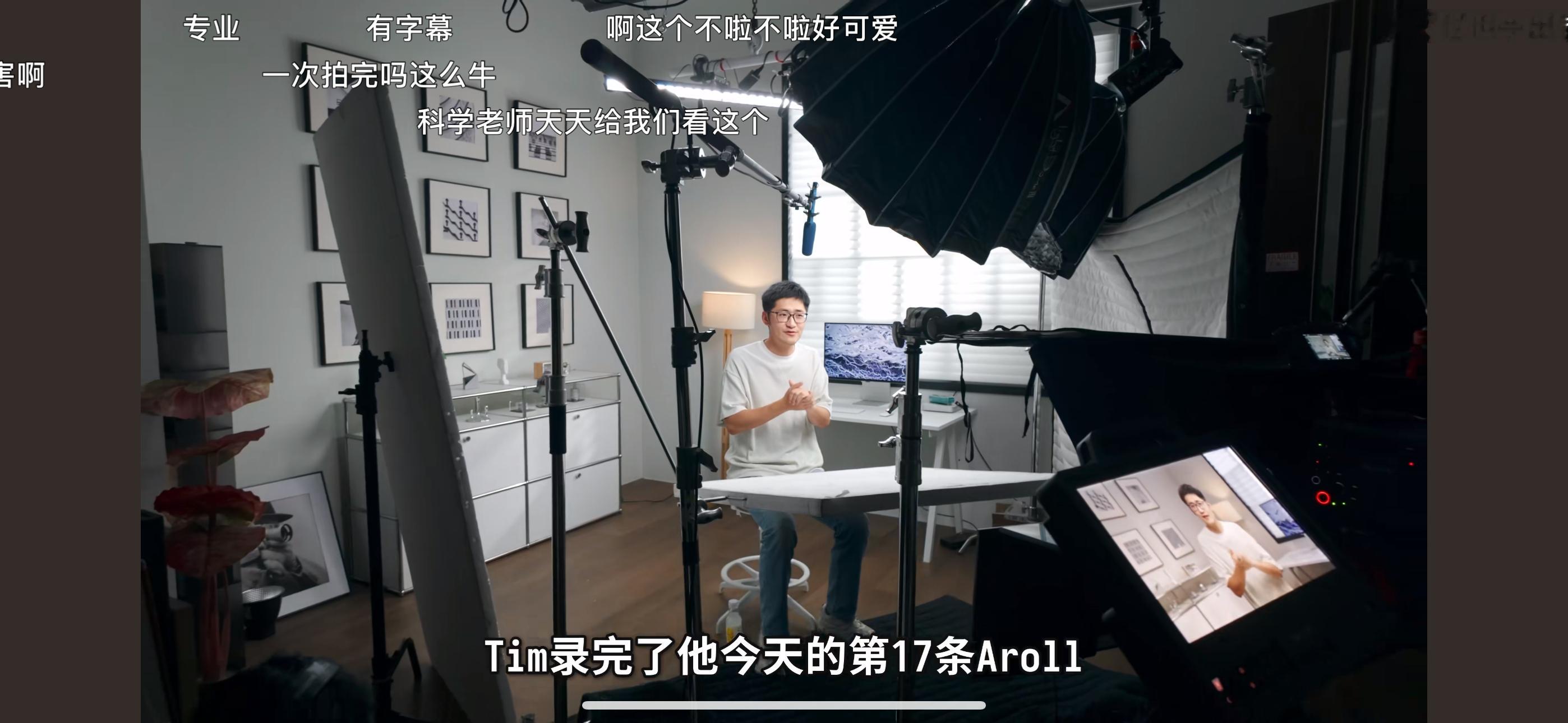 刚看了影视飓风tim的采访,晚上10点多完成了当天的17条拍摄,然后还有日常的一