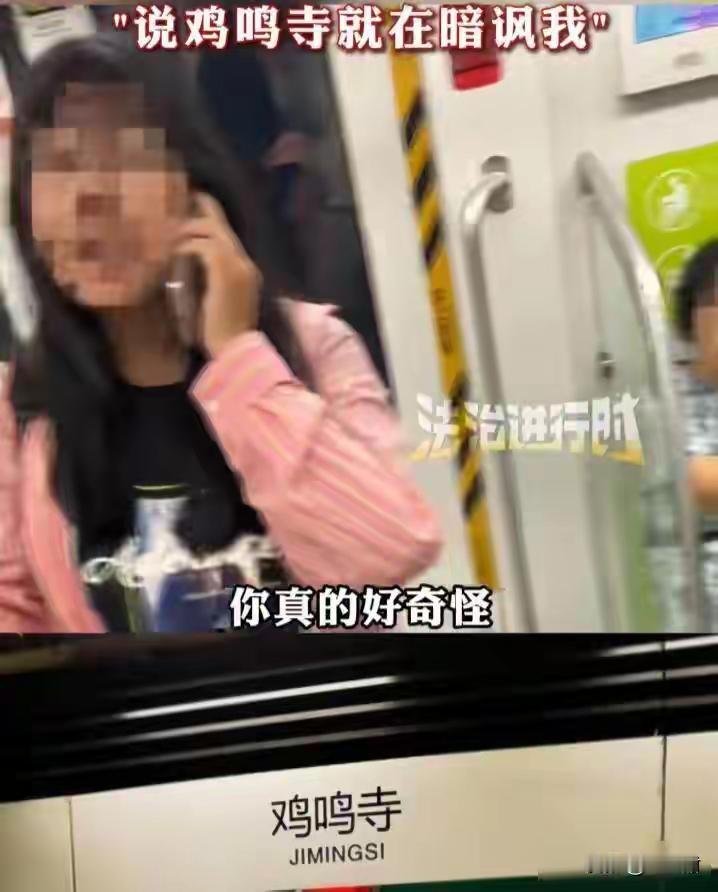 南京地铁车厢里,一家人正聊着行程,提到“鸡鸣寺”站,旁边穿粉色外套的女乘客突然就急了,非说人家在骂她,旁边人解释说是随便说说路线,连她身边的女性朋友都帮着说,可她还是不信,越说越气,最后说要报警。警方在电话里听了半天也没听明白,鸡鸣寺这名字在南京用了几十年,谁都知道是景点,可这位女士就死盯着那个“鸡”字不放,一遍遍问你们老提鸡怎么解释,还举着手机录个不停,像在拍什么证据,直到博主丈夫突然来了一句你觉得你长得多好看值得我们去骂,她才哑了火,嘴里嘟嘟囔囔,没到站就急着下了车。 有网友表示:无理取闹,毫无代价,所以才越来越多,越来越过分。不光是怀疑被偷拍报警,然后一句歉意的话都没有,还有两个女的坐地铁,非说有人盯着她们一直看,而报警,最后也没任何后果。如果都按寻衅滋事拘留几天,就不会这样放肆了。 应该再听听那个女的解释,为啥会那么敏感。我遇到过类似的情况,我在地铁站当过保安,站上的正式工就在我旁边东一句西一句说某某被偷了,肯定是保安或者保洁干的,而且当我面反复说保安素质极低,我没有理会他们这群狗眼看人低的家伙,后来我到社区上班了还考了中级社工,我就问谁还没个人生的低谷,有些人就是那样故意诋毁别人。 寻衅滋事,毫无代价,通常借故自己心里有问题,撒泼耍赖,背后的原因是执法不严,不能严厉打击这种荒唐行为。 对此大家怎么看呢?