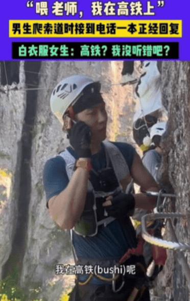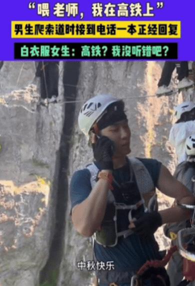 浙江一男生在爬索道时,突然接到老师电话,让他交作业资料!他为了蒙混过关,竟然一本