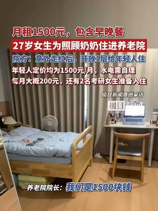 27岁女生花1500元月租住进养老院,这事儿在网上可热闹了!原来,她这么做是为了