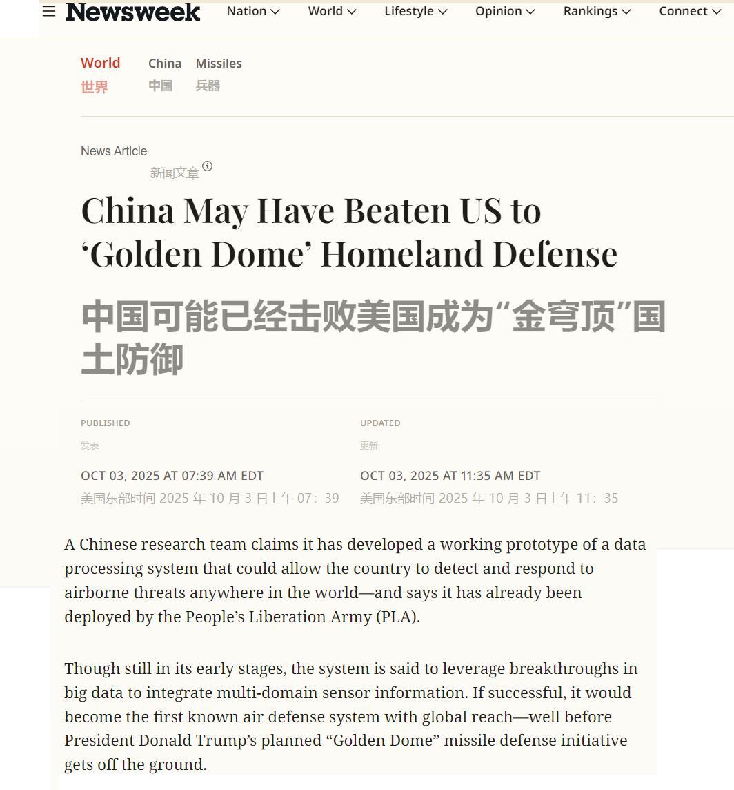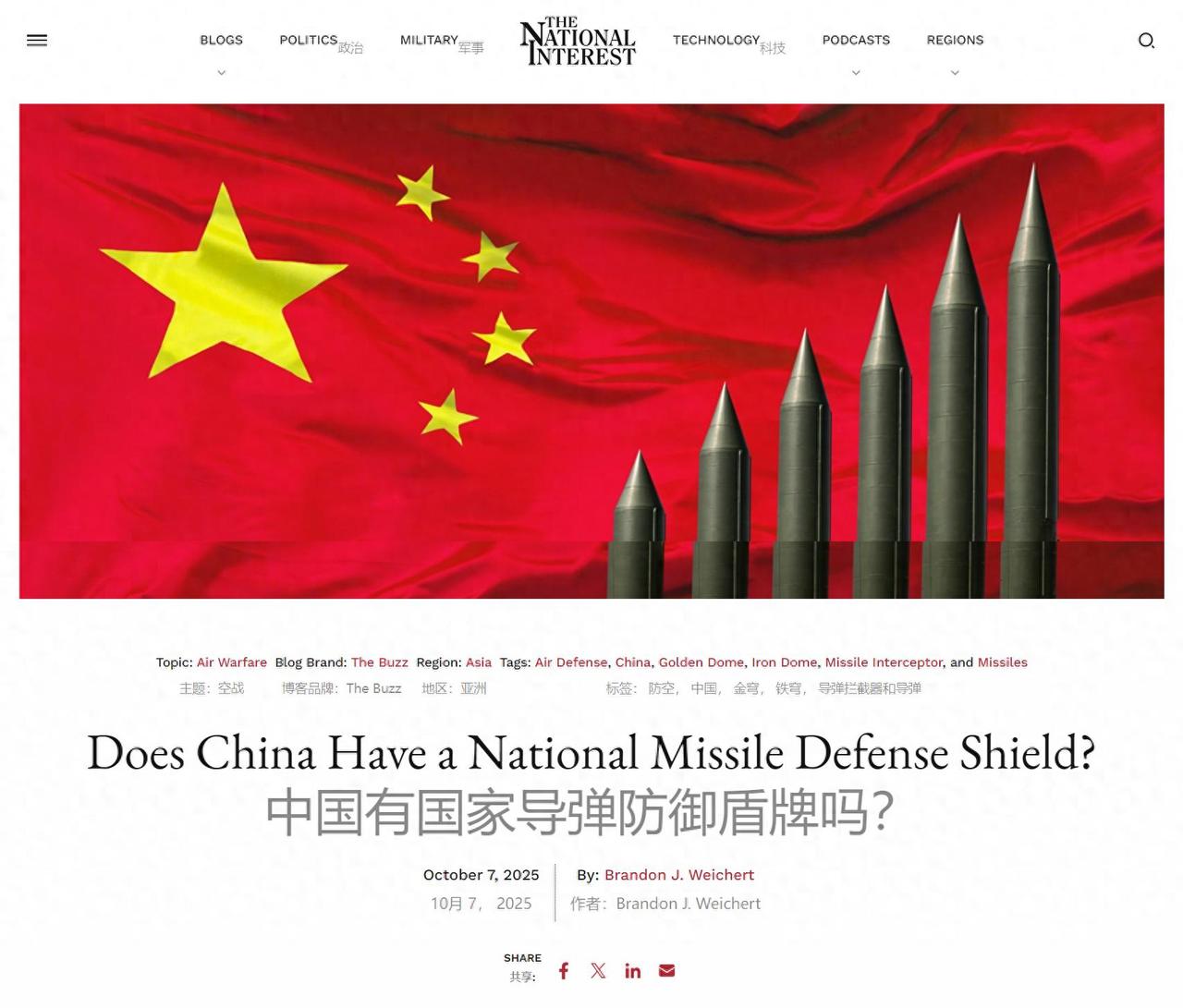 中国拦不住美国洲际导弹?美媒分析中国反导能力: 远远落后于美国 最近有个话题在国际新闻圈子里闹得挺热闹:美国主流媒体又开始盯上中国反导系统了。 10月7日那天,《国家利益》杂志甩出一篇分析,说中国虽然在导弹预警这块有点新花样,但真要拦美国的洲际导弹,还差得远。 碰巧特朗普正忙着推自己的“金穹计划”,这下全世界都盯着看中美怎么在反导领域较劲。中国国防部前阵子还特意开了发布会,对“金穹计划”敲了警钟。 美国媒体的结论到底靠不靠谱?中国反导能力是不是像他们说的“远远落后”?今天咱们就来掰扯掰扯其中的门道。 美国媒体为啥这么说?这得从他们的分析套路说起。美媒这次的逻辑其实挺简单——中国在预警系统上有了新突破,比如“分布式预警检测大数据平台”,能看得见上千枚导弹在天上飞。 但美媒觉得,中国的拦截那一环还得靠老家伙,技术没跟上,难以招架美国洲际导弹那种速度和复杂轨迹。说白了,人家导弹飞过来,咱最多能发现,真打起来就有点手忙脚乱。 美媒举了个例子,说洲际导弹从发射到落地也就半小时出头,这么短的时间,中国现有拦截手段不够用。 美国的反导系统,在他们自己嘴里,那可是不差钱的活儿。GBI拦截弹、SM-3这些家伙服役好多年了,连以色列都靠着美国技术把伊朗的导弹拦了个七七八八。 外媒还经常拿这些数据出来说事儿,给美国反导能力贴金。倒是中国这边,公开的拦截测试不算多,很多老外就觉得中国还在“摸着石头过河”。 这种对比看起来有理有据,但也有点只看表面。美国媒体喜欢用自己的标准衡量别人,有点像用篮球规则去评论足球,多少有点不对味。 中国到底是不是“拦不住”美国的洲际导弹?其实,事情没那么简单。 先说预警系统,咱们这几年搞的“分布式预警平台”,整合了天上的卫星、空中的预警机、海上的雷达,信息能一锅端地送到指挥中心。 这种全球态势感知,就像开了全天候的“千里眼”。 《现代雷达》上有论文,专门分析过这个系统的厉害之处。真要说拦截能力,HQ-19和HQ-29这些新一代反导弹,已经做过实弹测试,最近一次阅兵还秀了一把肌肉。 HQ-19对标美国的萨德,HQ-29对标标准-3,在中段拦截上,测试成功率几乎贴近满分。还有DN系列拦截弹,研发进步不小。 别忘了,咱们的反舰弹道导弹,比如DF-17,也用了类似的制导和拦截技术。美媒总喜欢忽略中国系统的集成优势,光盯着拦截那一环,其实整体协同才是门道。 说到反导,不能只看技术参数,还得算算经济账。美国的萨德一枚要价1550万美元,标准-3更贵,接近三千万美元一颗。 打一次伊朗,消耗上百枚拦截弹,生产线得忙三年才能补齐。中国的反导弹虽然没公开详细价格,但按业内说法,成本优势不小。 伊朗这次打以色列,萨德拦截弹用得飞起,大家都看在眼里。美国每年买的拦截弹数量也不多,四十枚左右。 中国自家导弹库存,据说比伊朗多好几倍,真要打起消耗战,谁能熬到最后还真不好说。 有报道分析过军备竞赛的经济压力,美国现在军费紧张,买得起高端拦截弹,但长期烧钱可不是闹着玩。 从战略角度讲,谁家反导系统不是靠数量和消耗撑起来的?中国的反舰弹道导弹,比如DF-27,射程直接威慑到美军航母。 美国反导固然强,但面对多点突防和数量优势,防得住一时,防不住一世。战争比的不是谁家单项技术最牛,而是整体调度和持久作战能力。 美国媒体如果只盯着技术参数下结论,未免有点刻舟求剑。中国的反导系统,从预警到拦截再到实战配合,更像一支团队作战的球赛,讲究协同,讲究持久力。 美国媒体这次的结论,说中国远远落后,显然低估了中国在系统集成和经济消耗上的潜力。中国的反导路子是“闷声发大财”,不爱吹牛,但关键时刻能顶得住。 毕竟反导系统不是单靠一款导弹或者某个技术就能决定成败,实战环境才是最终考场。 中美之间在反导领域的竞争,和冷战时期的“星球大战”计划有点像,烧钱、拼脑子,最后还是要看谁能把系统玩得更转。 军备竞赛这事,表面上是技术比拼,实际上比的是战略智慧和消耗能力。技术差距总有一天会被弥补,真正决定胜负的,是谁能用更少的钱,做更多的事。 国际社会其实都盯着看,希望大国之间少点对抗,多点合作。别让技术差距变成新的误判,理性看待中美反导能力,才不会被情绪带偏了节奏。 参考资料:“‘美国构想中国落地’的又一例证” 2025-09-30 14:11观察者网