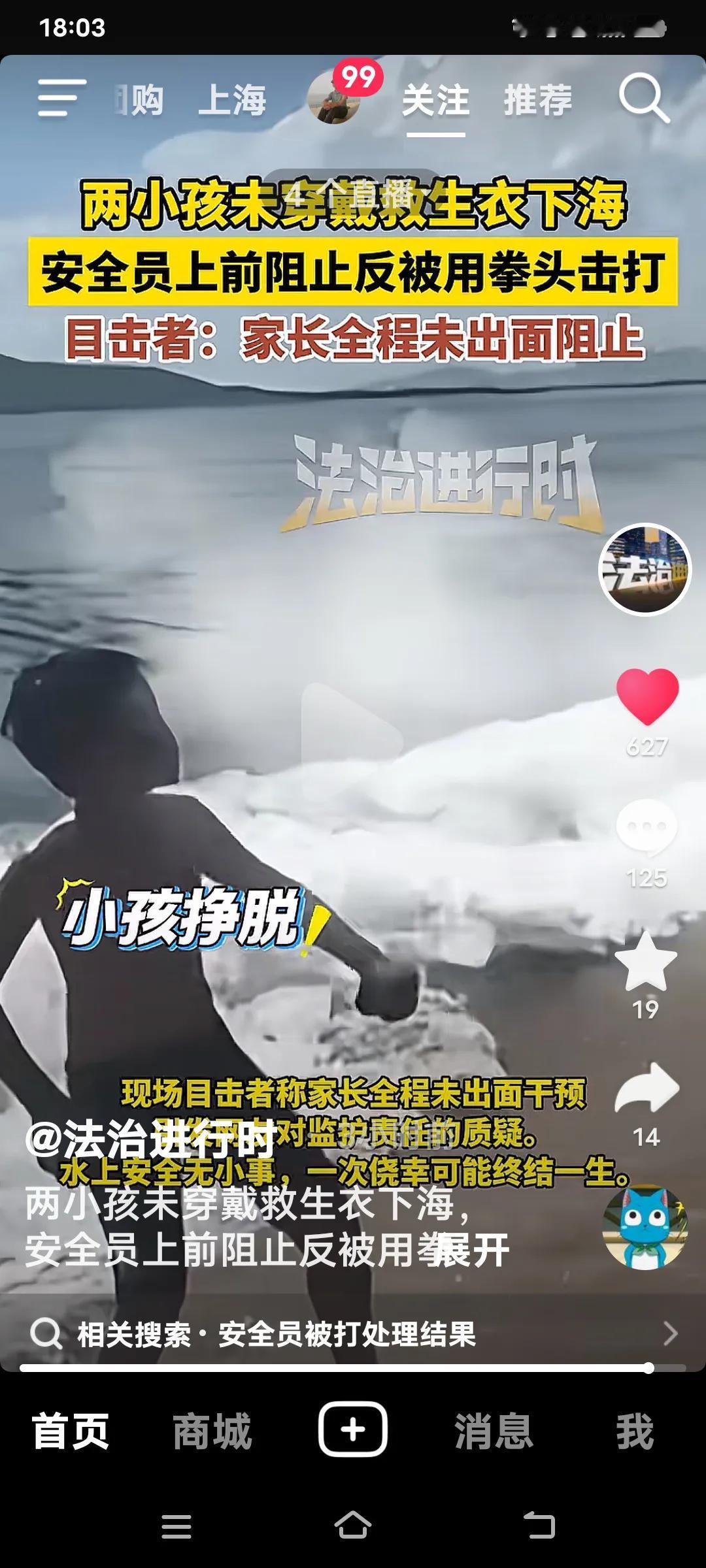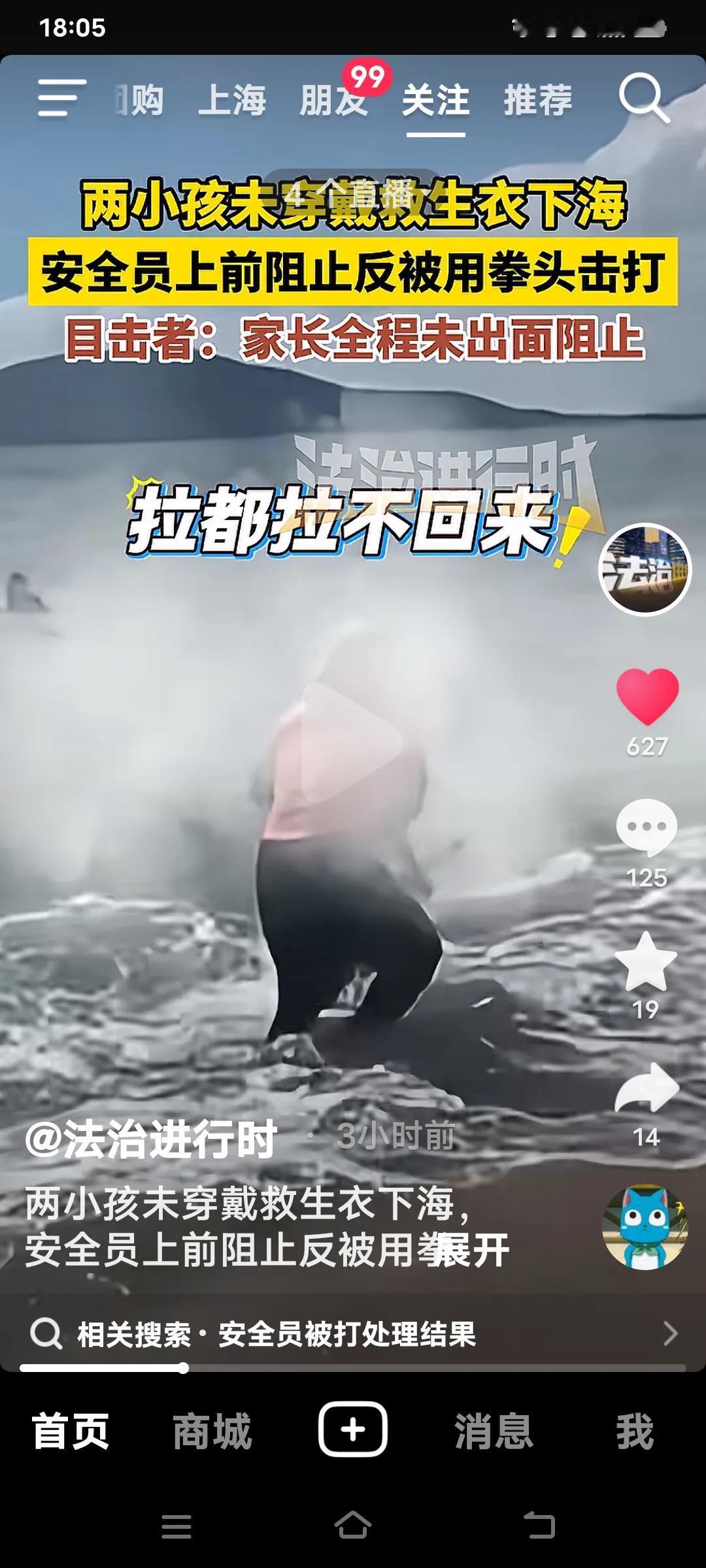 两名小孩未着救生衣下海,安全员上前制止竟遭拳头相向! 广东海滩上,两名小男孩未穿救生衣便下海,安全人员多次劝说无果,他们竟挥拳殴打安全员。即便如此,安全人员还是将他们拉回了岸上。据目击者称,整个过程中未见孩子家长出面干预。评论区里,有人表示:“别问了,出了事就别怪别人不救。”还有人提出“讹人”等各种看法。 这实在令人气愤!安全员是为孩子的安全着想,万一一个巨浪袭来,孩子便会有生命危险。在海里游玩可不能当儿戏!许多悲剧皆是因大人疏忽所致,既让孩子遭遇不幸,也给自己带来无尽的悲痛!落水小孩 幼童溺水 落水小男孩