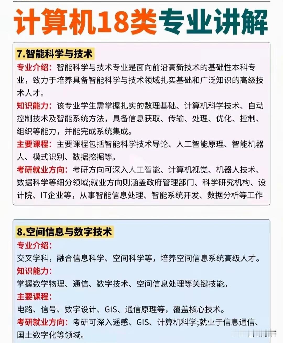计算机类下面的18个具体专业及其相应的详细介绍,可以好好了解下每个不同的二级专业