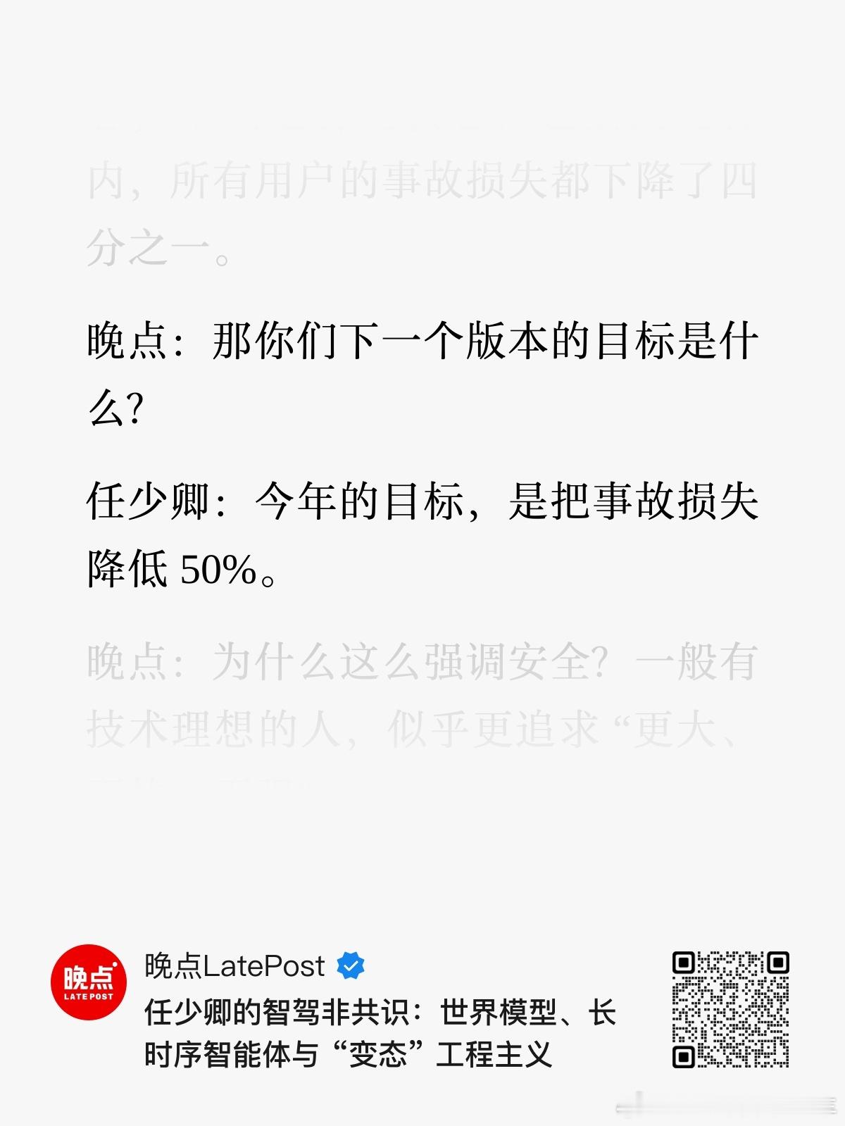 「先用端到端模型做主动安全,比先落地端到端城区领航更重要,因为能真正减少事故,对用户和社会都最有价值」