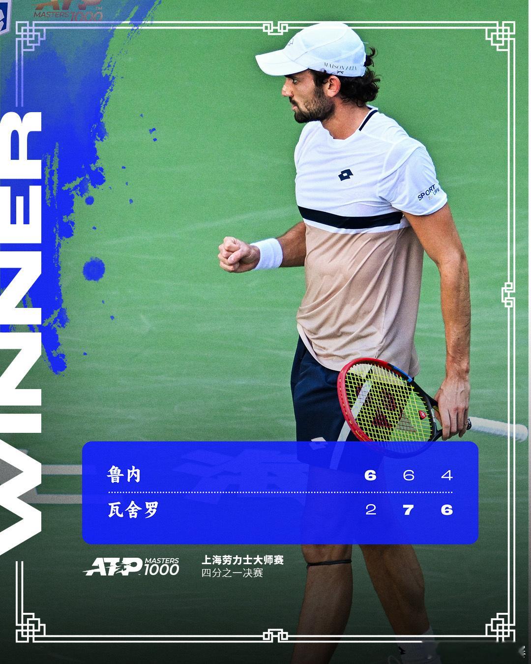 男单四分之一决赛,资格赛球员瓦舍罗苦战近三小时,以2-6 7-6(4) 6-4逆转10号种子鲁内,生涯首进巡回赛四强!他将静候德约科维奇和贝尔赫斯的胜者。