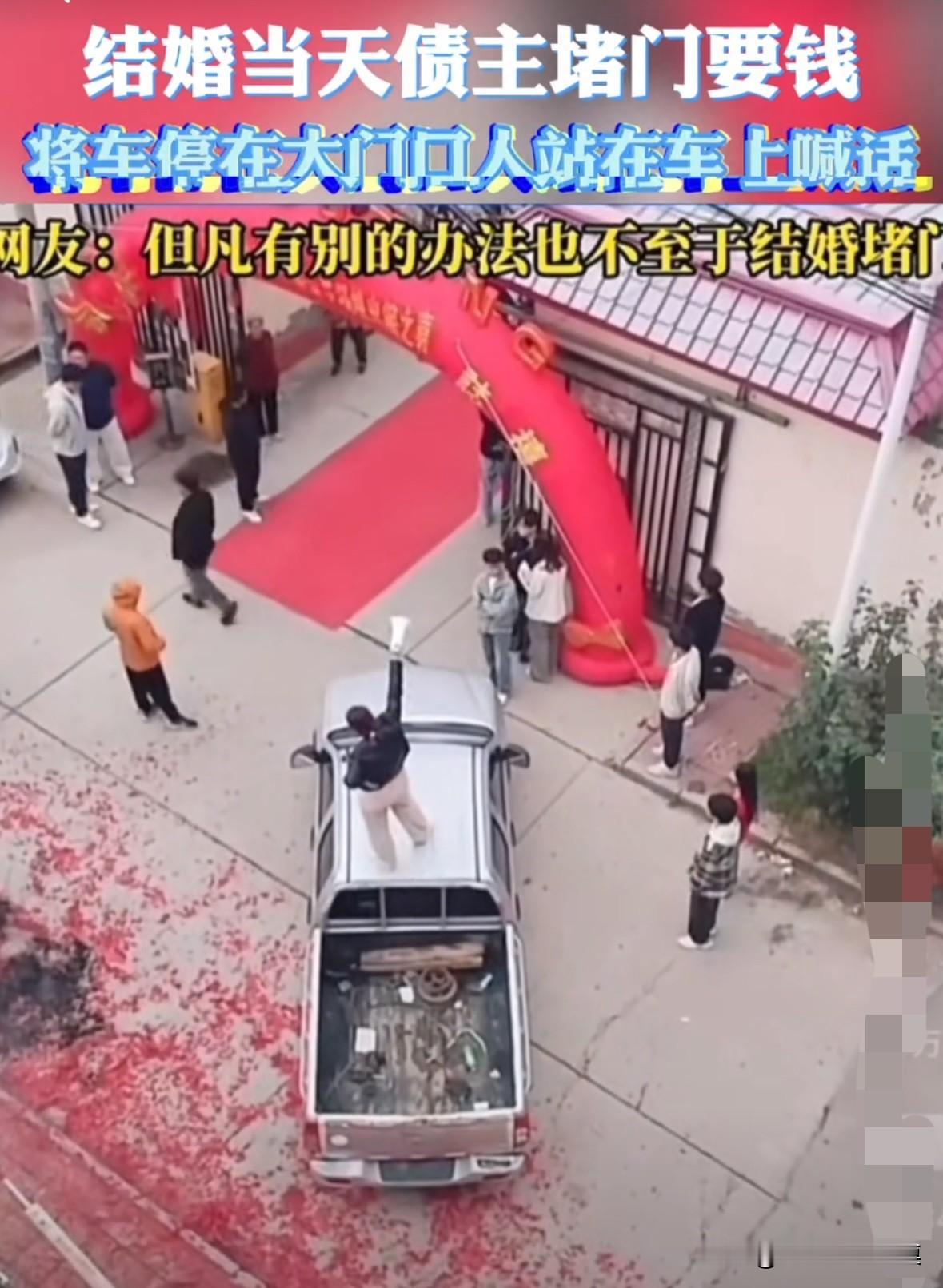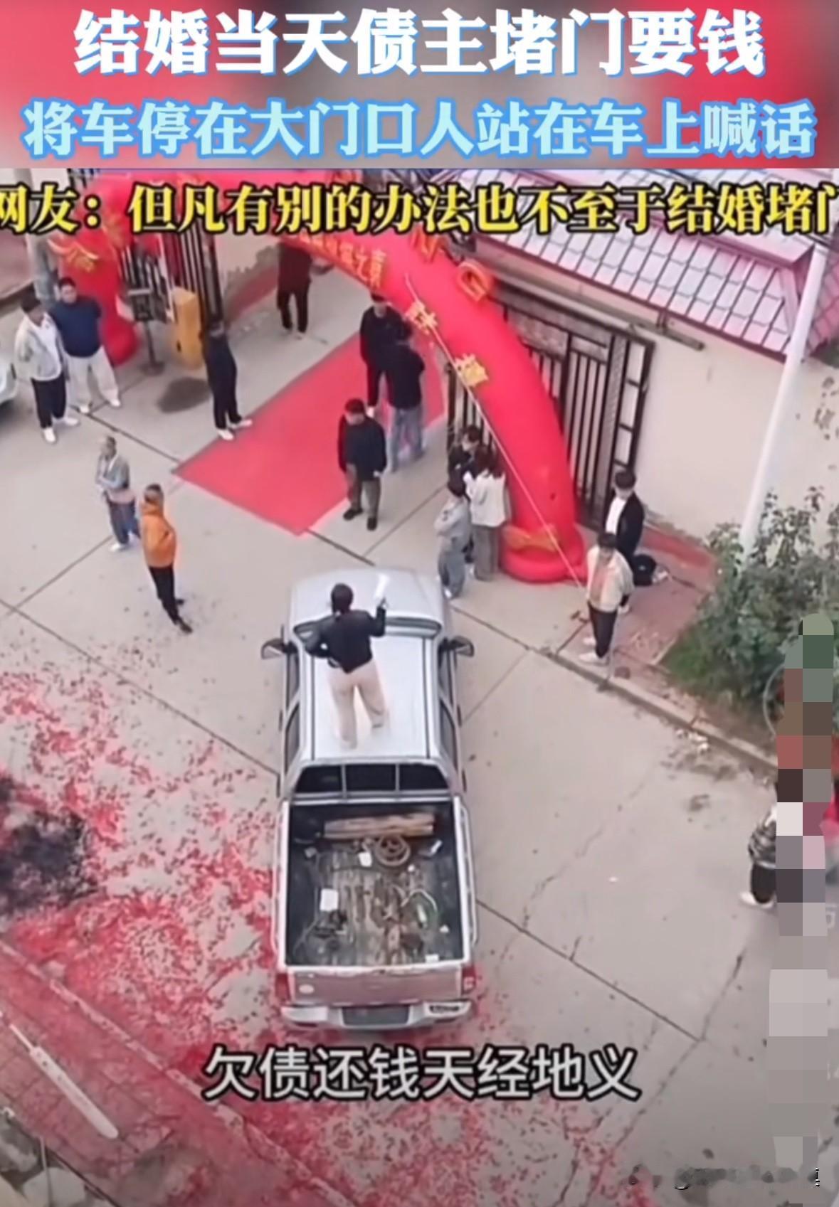 结婚当天债主堵门要债!债主站在车顶,拿个大喇叭,大声喊:“欠债还钱,天经地义!” 债主还说:“说好了到期还钱,结果没给,我一天见不到你的钱,就这么耗!” 这就过分了,人家大喜的日子,这样堵门就是不合适,哪怕是过了这一天再协商也行啊! 评论区说:但凡有别的办法也不至于结婚堵门 你们怎么看这件事?欠钱要帐 要账催收